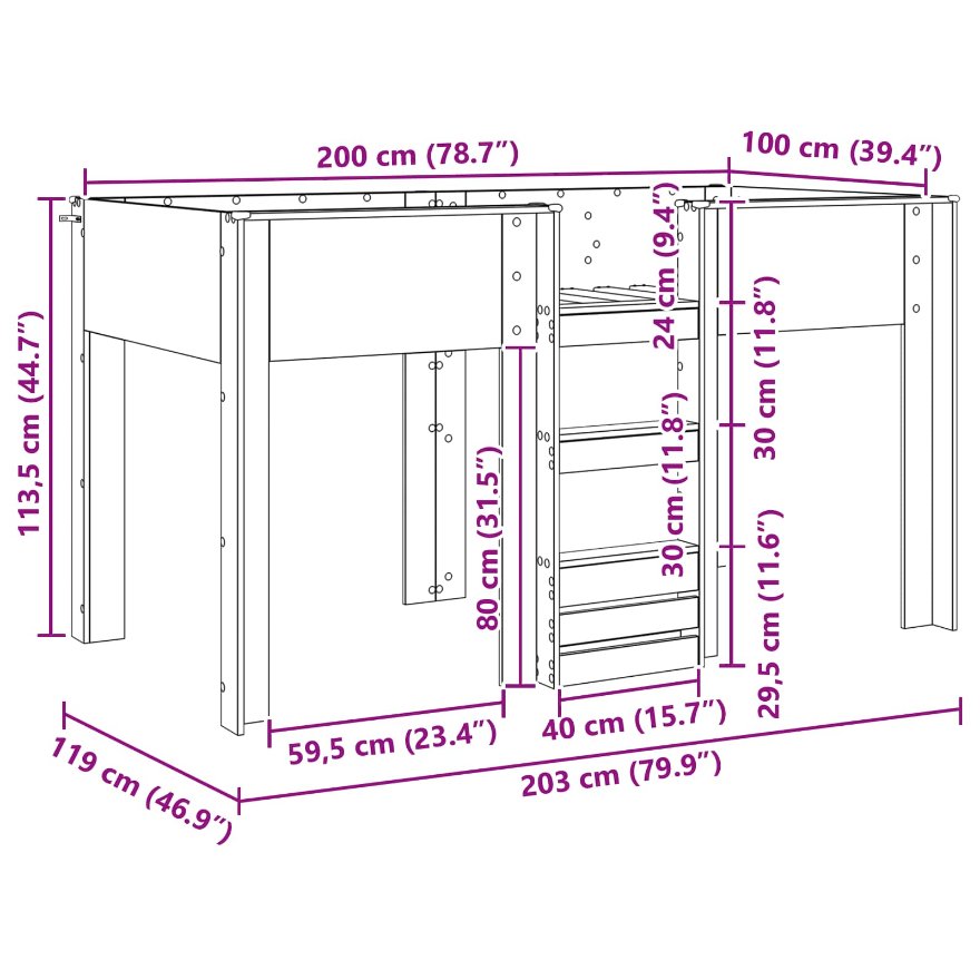 - Gesamtabmessungen: 203 x 119 x 113,5 cm (L x B x H)