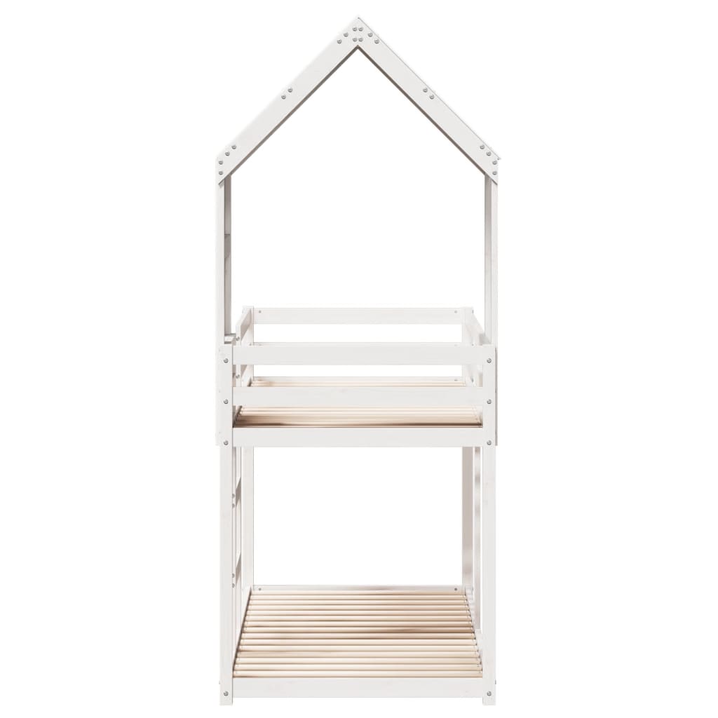 Dieses elegante und praktische Etagenbett mit Dach ist die perfekte Ergänzung zu jedem Kinderzimmer mit begrenztem Platzangebot. Massives Kiefernholz: Massives Kiefernholz ist ein wunderschönes Naturmaterial. Kiefernholz weist eine gerade Maserung auf und die Aststellen verleihen dem Material seine charakteristische, rustikale Optik.Sicheres Design: Das Hochbett ist auf Sicherheit ausgelegt. Es verfügt über Leitplanken, um zu verhindern, dass du während des Schlafens herausfällst.Sperrholzlatten: Die Sperrholzlatten sorgen für eine gute Gewichtsverteilung und auch dafür, dass die Matratze bei jeder Bewegung deines Körpers während des Schlafes an Ort und Stelle bleibt.Viel Spaß: Durch das Anbringen dieses Dachgestells am Kinderbett kannst du einen Rückzugsort schaffen, der deinem Kind viel Spaß vor dem Schlafengehen bietet. Diese innovative Ergänzung wird nicht nur ein spannender Blickfang sein, sondern auch für Staunen und Spannung im Kinderzimmer sorgen.Geeignet für begrenzte Platzverhältnisse: Der Bettrahmen ist eine ausgezeichnete Wahl für jedes Zimmer mit begrenztem Platz, es bietet zwei einzelne Betten mit kompaktem Design.Offene Seite: Das Dach verfügt über eine offene Seite, die den Kindern den Ein- und Ausstieg erleichtert, Gut zu wissen:Bei diesem Bett ist keine Matratze im Lieferumfang enthalten. Wir bieten jedoch eine große Auswahl an Matratzen an. Du kannst in unserem Shop nach einer passenden Matratze suchen.