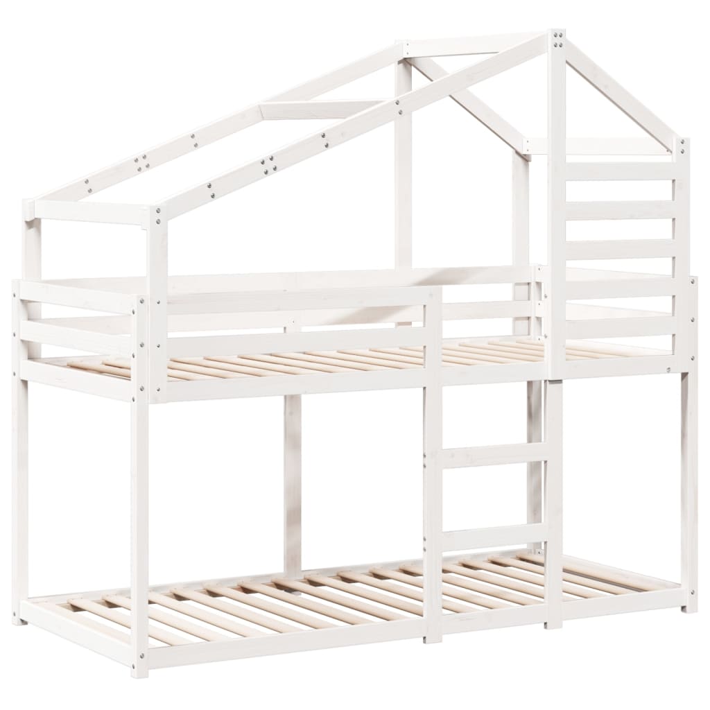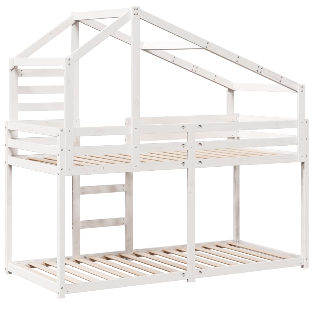 Dieses elegante und praktische Etagenbett mit Dach ist die perfekte Ergänzung zu jedem Kinderzimmer mit begrenztem Platzangebot. Massives Kiefernholz: Massives Kiefernholz ist ein wunderschönes Naturmaterial. Kiefernholz weist eine gerade Maserung auf und die Aststellen verleihen dem Material seine charakteristische, rustikale Optik.Sicheres Design: Das Hochbett ist auf Sicherheit ausgelegt. Es verfügt über Leitplanken, um zu verhindern, dass du während des Schlafens herausfällst.Sperrholzlatten: Die Sperrholzlatten sorgen für eine gute Gewichtsverteilung und auch dafür, dass die Matratze bei jeder Bewegung deines Körpers während des Schlafes an Ort und Stelle bleibt.Viel Spaß: Durch das Anbringen dieses Dachgestells am Kinderbett kannst du einen Rückzugsort schaffen, der deinem Kind viel Spaß vor dem Schlafengehen bietet. Diese innovative Ergänzung wird nicht nur ein spannender Blickfang sein, sondern auch für Staunen und Spannung im Kinderzimmer sorgen.Geeignet für begrenzte Platzverhältnisse: Der Bettrahmen ist eine ausgezeichnete Wahl für jedes Zimmer mit begrenztem Platz, es bietet zwei einzelne Betten mit kompaktem Design.Offene Seite: Das Dach verfügt über eine offene Seite, die den Kindern den Ein- und Ausstieg erleichtert, Gut zu wissen:Bei diesem Bett ist keine Matratze im Lieferumfang enthalten. Wir bieten jedoch eine große Auswahl an Matratzen an. Du kannst in unserem Shop nach einer passenden Matratze suchen.
