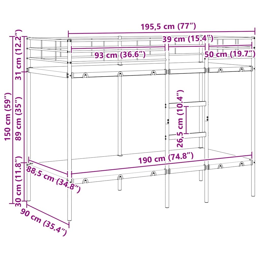 Dieses Etagenbett vereint zwei Betten in einem und bietet dadurch eine platzsparende Alternative, sei es für Übernachtungsgäste, Pyjamapartys oder Familien mit mehreren Kindern. Robuste Metallkonstruktion: Das Bettgestell ist aus Stahl gefertigt. Stahl ist ein außergewöhnlich hartes und starkes Material, das eine außergewöhnliche Robustheit und Stabilität bietet.Atmungsaktiver und stützender Lattenrost: Der Bettrahmen besteht aus einem Netzgewebe, das deine Matratze hervorragend stützt und atmungsaktiv macht.Optimale Raumausnutzung: Dieses Etagenbett vereint zwei Einzelbetten in einem und bietet dadurch eine platzsparende Lösung für Übernachtungsgäste, Pyjamapartys oder Familien mit mehreren Kindern.Einfaches Auf- und Absteigen: Dieses Hochbett verfügt über eine eingebaute Leiter, die den Benutzern einen bequemen Zugang zum Bett ermöglicht.Rausfallschutz für mehr Sicherheit: Dieser Lattenrost ist mit Rausfallschutz versehen, der das Herunterfallen während des Schlafs zu verhindert. Achtung:Um ein Umkippen zu verhindern, muss dieses Produkt mit einer Wandhalterung (nicht im Lieferumfang enthalten) gesichert werden.Das obere Bett ist nicht für Kinder unter 6 Jahren geeignet. Gut zu wissen:Bei diesem Bett sind keine Matratzen im Lieferumfang enthalten. Wir bieten jedoch eine große Auswahl an Matratzen an. Du kannst in unserem Shop nach der passenden Matratze suchen.Schrauben und Dübel für die Montage an der Wand sind nicht enthalten. Passendes Montagezubehör muss separat gekauft werden. Wenn du dir bezüglich der Montage nicht sicher bist, wende dich bitte an einen Fachmann. Bitte lies und befolge jeden Schritt in der Anleitung.