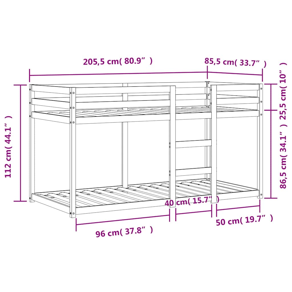 Dieses elegante und funktionelle Etagenbett aus Holz ist die perfekte Ergänzung für jedes Zimmer mit begrenztem Platzangebot. Massives Kiefernholz: Massives Kiefernholz ist ein wunderschönes Naturmaterial. Kiefernholz weist eine gerade Maserung auf und die Aststellen verleihen dem Material seine charakteristische, rustikale Optik.Sicheres Design: Das Hochbett ist auf Sicherheit ausgelegt. Es verfügt über Leitplanken, um zu verhindern, dass du während des Schlafens herausfällst.Sperrholzlatten: Die Sperrholzlatten sorgen für eine gute Gewichtsverteilung und auch dafür, dass die Matratze bei jeder Bewegung deines Körpers während des Schlafes an Ort und Stelle bleibt.Geeignet für begrenzte Platzverhältnisse: Der Bettrahmen ist eine ausgezeichnete Wahl für jedes Zimmer mit begrenztem Platz, es bietet zwei einzelne Betten mit kompaktem Design. Gut zu wissen:Matratzen sind bei diesem Bett nicht im Lieferumfang enthalten. Wir bieten jedoch eine große Auswahl an Matratzen an. Du kannst in unserem Shop nach passenden Matratzen suchen.