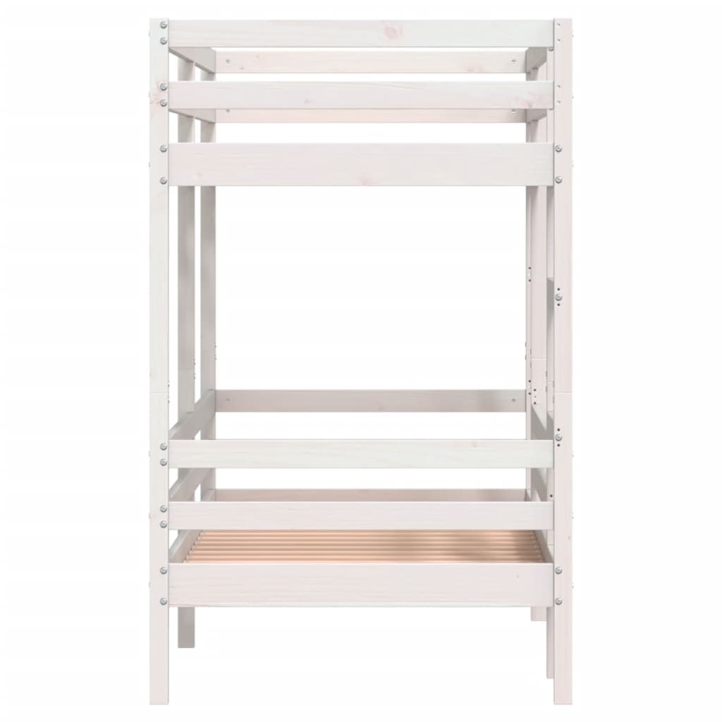 Dieses elegante und funktionelle Etagenbett aus Holz ist die perfekte Ergänzung für jedes Zimmer mit begrenztem Platzangebot. Robust und stabil: Massives Kiefernholz ist für seine Stärke und Haltbarkeit bekannt. Seine gerade Maserung und die charakteristischen Aststellen tragen zu seinem rustikalen Charme bei.Sicheres Design: Das Hochbett ist auf Sicherheit ausgelegt. Es verfügt über Leitplanken, um zu verhindern, dass du während des Schlafens herausfällst.Praktische Leiter: Die Leiter erleichtert den Einstieg ins obere Bett und bietet mehr Sicherheit und Stabilität.Geeignet für begrenzte Platzverhältnisse: Das Etagenbett aus Massivholz ist eine ausgezeichnete Wahl für jeden Raum mit begrenztem Platzangebot. Es ist eine Kombination aus zwei Einzelbetten mit kompaktem Design. Gut zu wissen:Im Lieferumfang sind nur die Bettgestelle enthalten. Die Matratzen sind nicht Teil des Angebots. Passende Matratzen findest du in unserem Shop. Achtung:Um ein Umkippen zu vermeiden, sollte dieses Produkt mit der mitgelieferten Wandhalterung gesichert werden.
