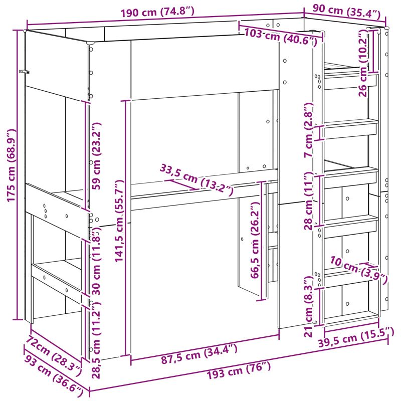 Etagenbettgestell mit Schreibtisch Beton Grau 100 x 200 cm