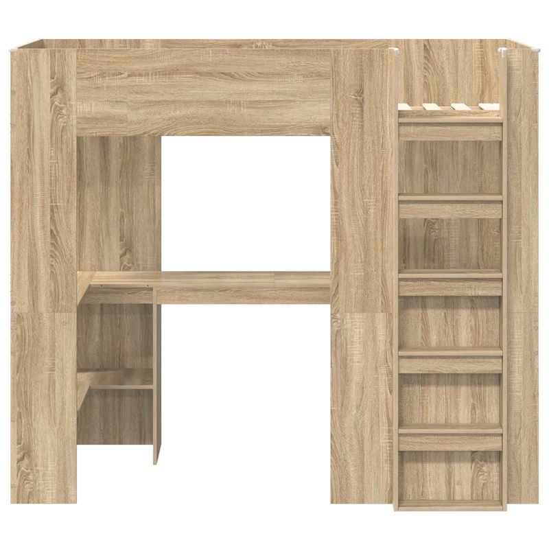 Der moderne Loft-Bettenrahmen mit Schreibtisch ist die perfekte platzsparende Lösung, die Funktionalität und stilvolles Design für jedes Schlafzimmer vereint. Dieses Einzelbettengestell hat ein schlankes Aussehen mit klaren Linien und wenig Schnickschnack. Ideal für Studenten oder kleine Räume, hat es einen Schreibtisch, der Schlaf- und Produktivitätszonen in einer kompakten Einheit vereint. Materialien: Dieser Bettenrahmen besteht aus Holzwerkstoff, der für seine Robustheit und die glatte Oberfläche gewählt wurde, die sowohl gut aussieht als auch funktional ist. Der Holzwerkstoff sorgt für die Stabilität und Stärke des Rahmens und garantiert, dass er den alltäglichen Anforderungen eines geschäftigen Haushalts standhält. Enthaltene Komponenten: Dieser Loft-Bettenrahmen hat einen praktischen Schreibtisch und Regale, die einen eigenen Raum zum Arbeiten und Lernen schaffen. Der Schreibtisch kann einen Laptop, Bücher und andere Lernmaterialien aufnehmen, während die Regale Platz für persönliche Dinge bieten und einen ordentlichen Bereich im Schlafzimmer schaffen. Praktisches Design: Das Bett hat Latten für die Matratzenunterstützung und ein Sicherheitsgeländer, um ein sicheres Schlafumfeld zu ermöglichen. Sein modernes Design mit Einfachheit und Minimalismus passt gut in Räume mit ähnlichem Stil. Die leicht zu erklimmende Leiter macht den Zugang zum oberen Bett sicher und bequem. Empfohlene Anwendungen: Ideal für kleine Schlafzimmer, Wohnheime oder Jugendzimmer, wo jeder Zentimeter zählt. Es ist nicht nur ein Schlafplatz, sondern auch eine Lernzone, also perfekt für Studenten oder jeden mit wenig Platz. Pflege & Wartung: Um den Rahmen optimal zu pflegen, solltest du ihn mit einem trockenen Tuch abstauben. Regelmäßige Kontrollen von Schrauben und Beschlägen helfen, die Stabilität des Rahmens über die Jahre zu sichern und seine Lebensdauer zu verlängern.