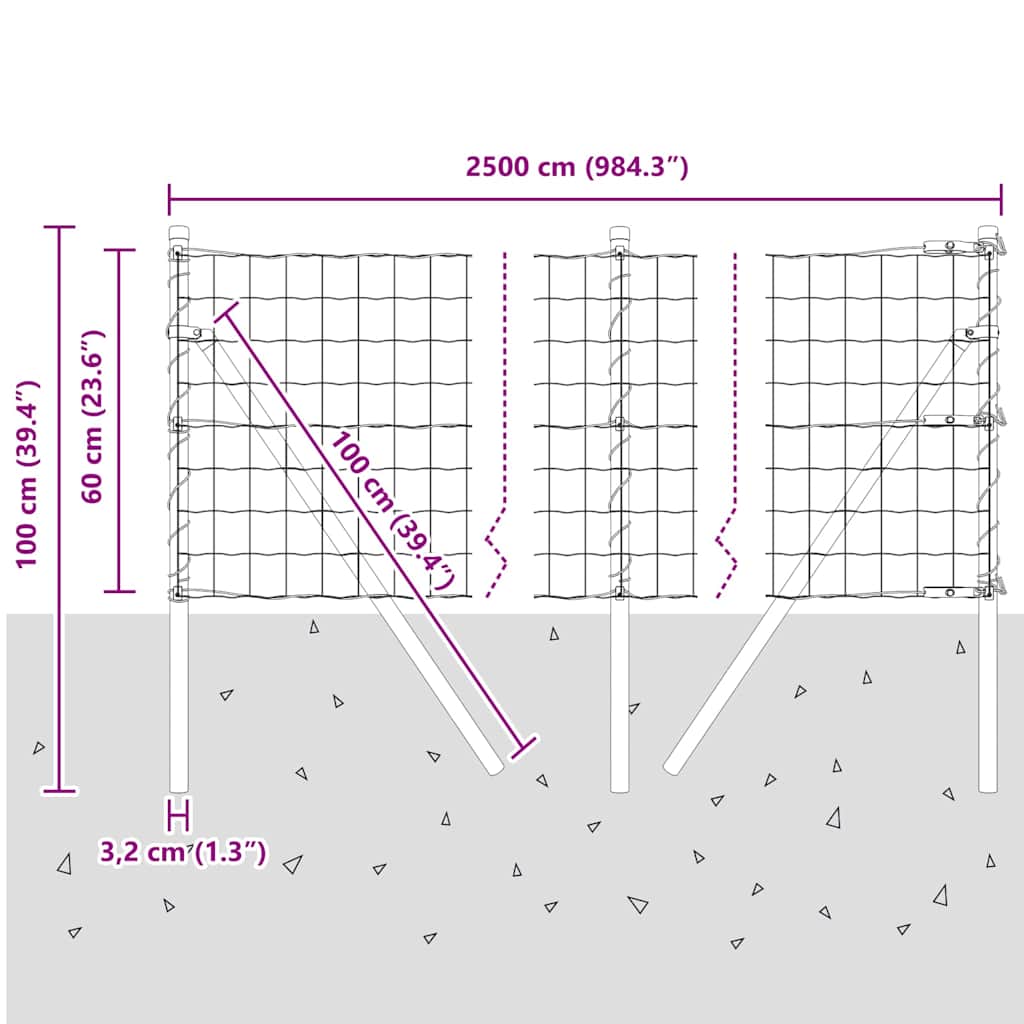 Euro-Zaun mit 13 Pfosten 0.6x25 m feuerverzinkter Stahl Grün
