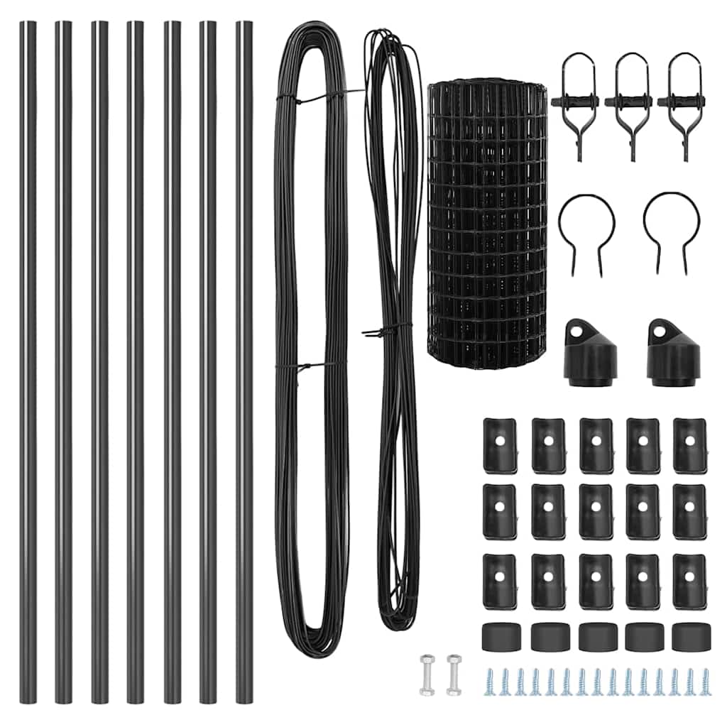 Der Euro Zaun ist genau das Richtige, um deine Gartenkanten aufzupolieren und alles sicher zu halten. Sein solider Aufbau und die moderne graue Farbe machen ihn zu einer tollen Ergänzung für jeden Außenbereich. Haltbarkeit: Aus robustem, verzinktem Stahl gemacht, ist dieser Zaun bereit, dem Wetter standzuhalten, und sorgt dafür, dass er lange hält. UV-beständig: Widerstandsfähig gegen Sonnenstrahlung, ohne zu verblassen; er behält sein gutes Aussehen das ganze Jahr über. Design: Die glatte, moderne Oberfläche verleiht ihm einen stilvollen Look, der in jeden Garten oder Außenbereich passt. Vielseitige Verwendung: Ideal für alles, vom Gartenzaun bis zu Grundstücksgrenzen, erfüllt er alle Anforderungen der Eigentümer. Komplettpaket: Kommt mit allem Zubehör, das du brauchst, wie Maschen, Drähte und Spannvorrichtungen für eine schnelle und einfache Montage.
