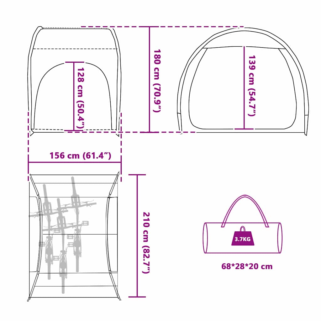 Dieses praktische Outdoor-Lagerschutzzelt ist eine geniale Lösung für alle Camper und Outdoor-Fans. Mit seinem modernen und schlanken Look bietet es eine einfache und funktionale Lösung für die Aufbewahrung deiner Ausrüstung und persönlichen Sachen, wenn du draußen bist. Die glatte, zylindrische Form sieht nicht nur schick aus, sie ist auch total funktional und bietet verlässlichen Schutz und ein angenehmes Erlebnis. Egal, ob du allein oder mit der Familie campst, dieser vielseitige Unterstand passt perfekt zu deinen Bedürfnissen. Wetterfeste Materialien Das Zelt besteht aus Polyester, Poly-Mesh, robustem Kunststoff und Polyethylen, sodass es optimalen Schutz gegen Regen und schlechtes Wetter bietet und langlebig und zuverlässig für all deine Campingtrips ist. Enthaltene Komponenten Im Paket findest du ein Fahrradlagertenzelt, FRP-Stangen in zwei Größen, Abspannseile, Pfähle und eine Tragetasche. Diese Teile erleichtern das Aufstellen und helfen dir, deine Ausrüstung sicher zu verstauen – ein echtes Muss für jeden Camper. Funktionales Design Dank der faltbaren Bauweise lässt sich das Zelt einfach transportieren und verstauen. Es hat einen Reißverschluss für sicheren Zugang und Schutz, was es für Outdoor-Fans noch praktischer macht. Praktische Nutzung Perfekt zum Campen und für die Lagerung im Freien, ist dieses Zelt ideal, um Fahrräder, Ausrüstung oder andere Besitztümer während der Reise sicher zu verstauen. Sein modernes Aussehen und die einfache Handhabung machen es zur flexiblen Wahl für verschiedene Outdoor-Aktivitäten. Pflegehinweise Um das Zelt lange in Topform zu halten, bürste den Schmutz ab, wenn es trocken ist, und reinige es nach jedem Gebrauch. Lagere es immer trocken, damit es in einwandfreiem Zustand bleibt und seine Lebensdauer verlängert wird.