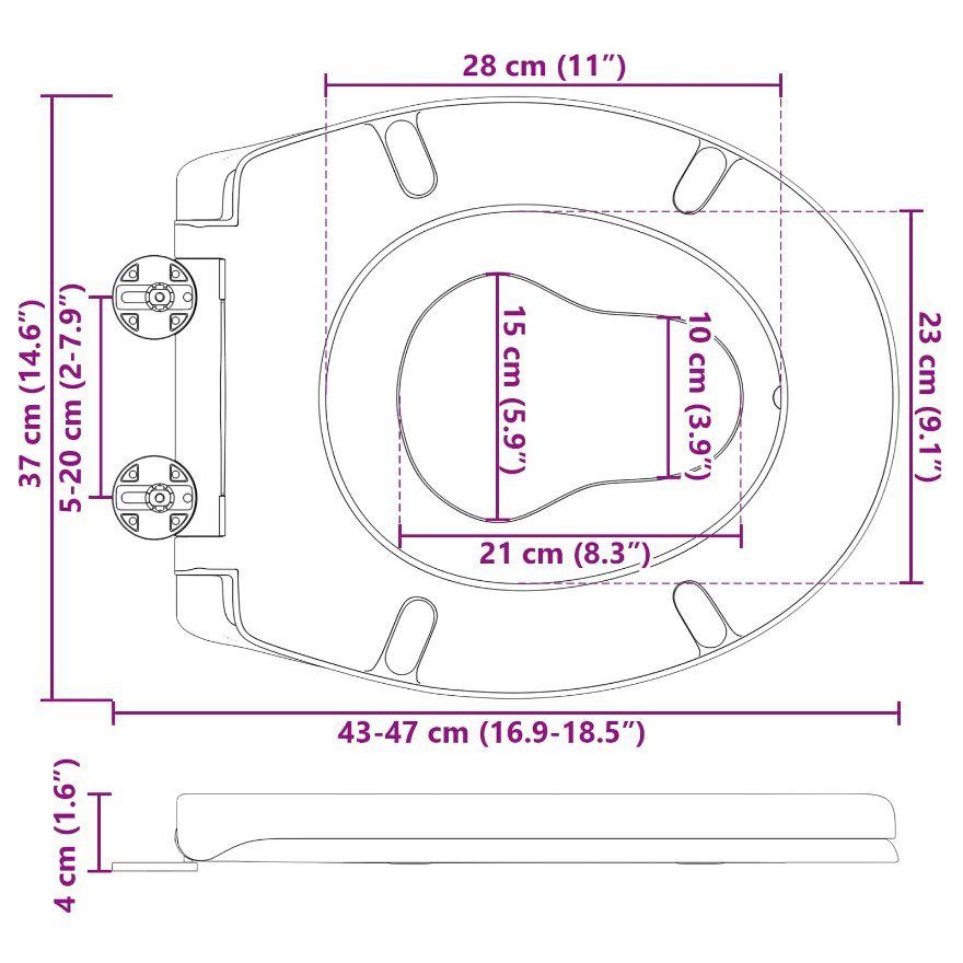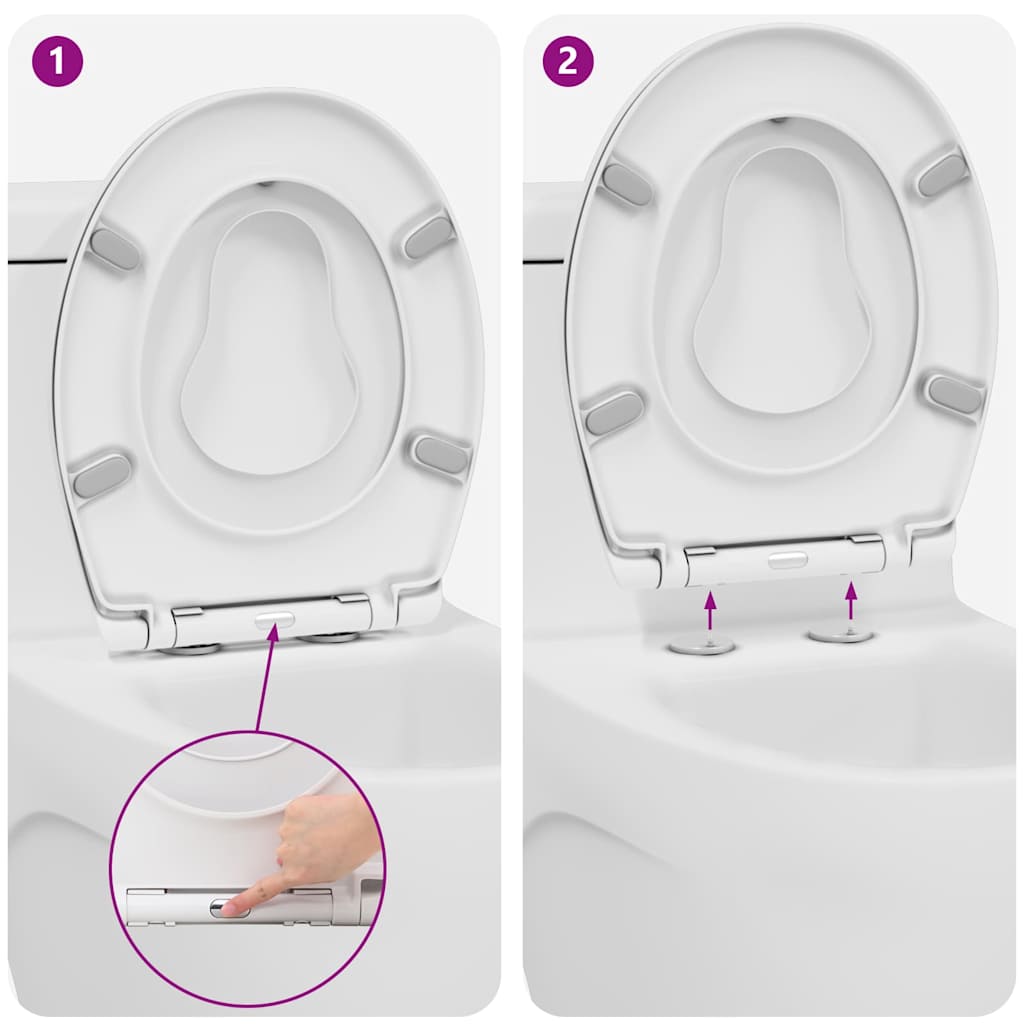 Der runde Duroplast-Toilettensitz ist ein Must-Have für dein Bad. Er kombiniert Funktionalität mit modernem Stil. Hergestellt aus hochwertigem Duroplast, ist er nicht nur robust, sondern hat auch eine glatte Oberfläche, die perfekt in ein zeitgemäßes Dekor passt. Ideal für alle, Erwachsene und Kinder. Top-Fix-Installation: Mit diesem Design ist der Sitzwechsel ganz easy, sodass du ihn immer problemlos anbringen kannst, wenn du die Toilette benutzen willst. Langlebiges Material: Der Toilettensitz aus Duroplast hält lange und behält seine Form und Stil. Außerdem hat er Edelstahl-Scharnieren für extra Halt. Stylisches Design: Die glatte, matte Oberfläche fügt sich perfekt in die neuesten Badezimmer-Trends ein. Dieser coole Look kann jeden Raum aufpeppen und ist super für alle, die Stil und Funktionalität möchten. Bequeme Nutzung: Entworfen für Standard-Toiletten bietet dieser runde Sitz sicheren Komfort für jeden und sorgt dafür, dass der Toilettengang angenehm ist. Leicht zu reinigen: Er ist resistent gegen aggressive Chemikalien, was das Reinigen einfach macht, und die glänzende Oberfläche sorgt für Hygiene und bessere Hygienepraktiken im Bad.