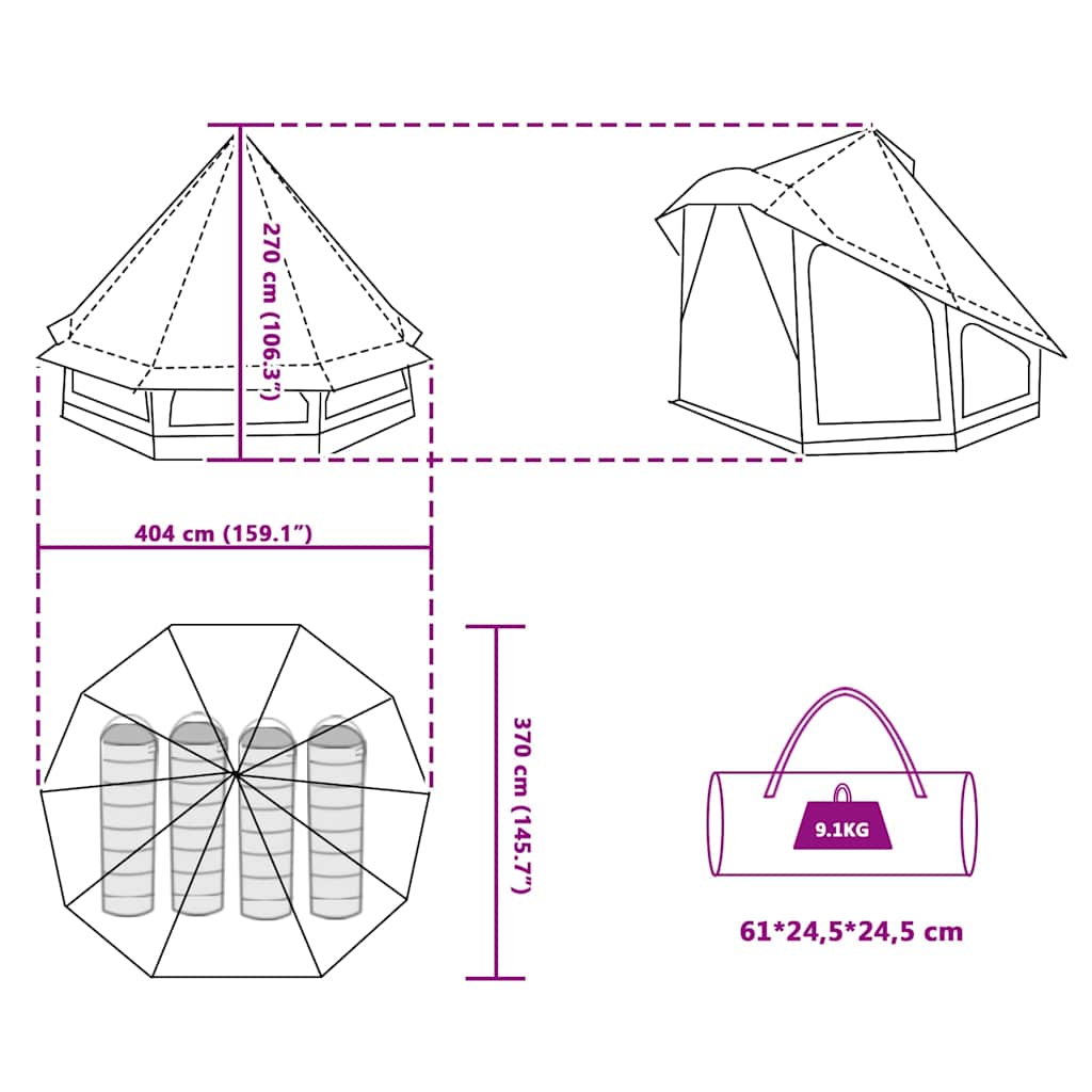 Dieses Kegelförmige Tipi Zelt ist für alle, die einen entspannten Ort in der Natur suchen. Es ist groß genug für sechs Personen und mit seinem lässigen Design und stabilen Aufbau ist es der perfekte Begleiter für Abenteuer – egal, ob im Garten oder draußen in der Wildnis. Dieses Tipi-Zelt ist aus wasserdichtem Material, damit du bei unerwarteten Regenschauern trocken bleibst, während du die Natur genießst. Der weiche und flexible Stoff passt sich perfekt an und sorgt dafür, dass du bei jedem Wetter bequem bist. Das atmungsaktive Design sorgt für eine gute Luftzirkulation, damit es nicht zu warm wird und du auch an heißen Sommertagen ein tolles Camping-Erlebnis hast. So hast du einen erfrischenden Platz zum Entspannen und Genießen. Mit 20 Bodenankern bleibt das Zelt auch bei Wind stabil, sodass du entspannt chillen kannst. Der Reißverschluss-Eingang erleichtert das Rein- und Rausgehen, ohne großen Aufwand. Außerdem gibt's praktische Innentaschen für deine wichtigen Sachen. Mit 404 cm Länge, 370 cm Breite und 270 cm Höhe bietet dieses geräumige Zelt Platz für all deine Aktivitäten, ob du im Schatten entspannen oder unter den Sternen schlafen möchtest.
