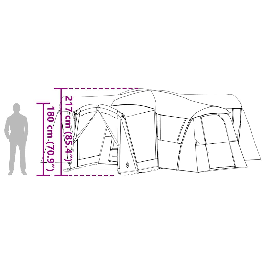 Erlebe unvergleichlichen Komfort mit dem Familien-Campingzelt, das perfekt für deine Outdoor-Abenteuer designed ist. Dieses moderne Zelt kombiniert Einfachheit und Funktionalität mit klaren Linien und viel Platz im Innenraum - ideal für Familien-Camping-Trips. Mit seinen großzügigen Abmessungen findet die ganze Familie darin Platz, inklusive Ausrüstung und zum Entspannen in schöner Umgebung. Das zeitgenössische Design spricht alle an, die ein sauberes und praktisches Campingerlebnis suchen. Wetterbeständigkeit: Hergestellt aus 185T Polyester mit PU-Beschichtung, bietet das Zelt hervorragende wasserdichte und winddichte Eigenschaften. So bleibt ihr trocken und geschützt. Zudem gibt's UV-Schutz, damit ihr vor schädlichen Sonnenstrahlen sicher seid. Diese Kombination macht das Zelt ideal für den Sommer und die Camping-Saison. Funktionale Komponenten: Das Zelt hat einen Reißverschluss für einfachen Zugang und Sicherheit. Die abnehmbare Regenhaube schützt euch bei schlechtem Wetter. Innentaschen und der Licht-Haken machen es super praktisch, damit ihr immer alles griffbereit habt. Zudem sorgen die Erdanker für Stabilität. Vielseitiges Design: Die Veranda-Erweiterung bietet zusätzlichen Platz, sodass ihr essen, entspannen oder Ausrüstung vom Schlafbereich trennen könnt. Mit seinen Abmessungen bietet das Zelt reichlich Raum für diverse Camping-Aktivitäten, vom Schlafen bis hin zu geselligen Momenten. Einfache Montage: Dieses Zelt ist so konzipiert, dass ihr es schnell auf- und abbauen könnt. Zu zweit ist der Aufbau mit den mitgelieferten Stangen und Ankern ein Kinderspiel. Die Tragetasche macht den Transport einfach, perfekt für Outdoor-Abenteuer. Einfache Pflege: Um das Zelt in top Form zu halten, wischt einfach mit einem feuchten Tuch über Schmutz und Ablagerungen. Diese einfache Pflege-Routine sorgt dafür, dass es über viele Outdoor-Saisons gut aussieht und gut funktioniert.