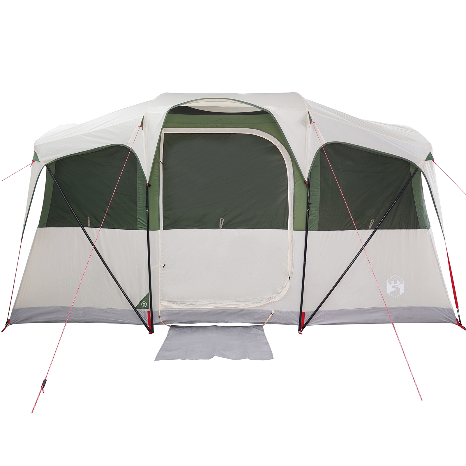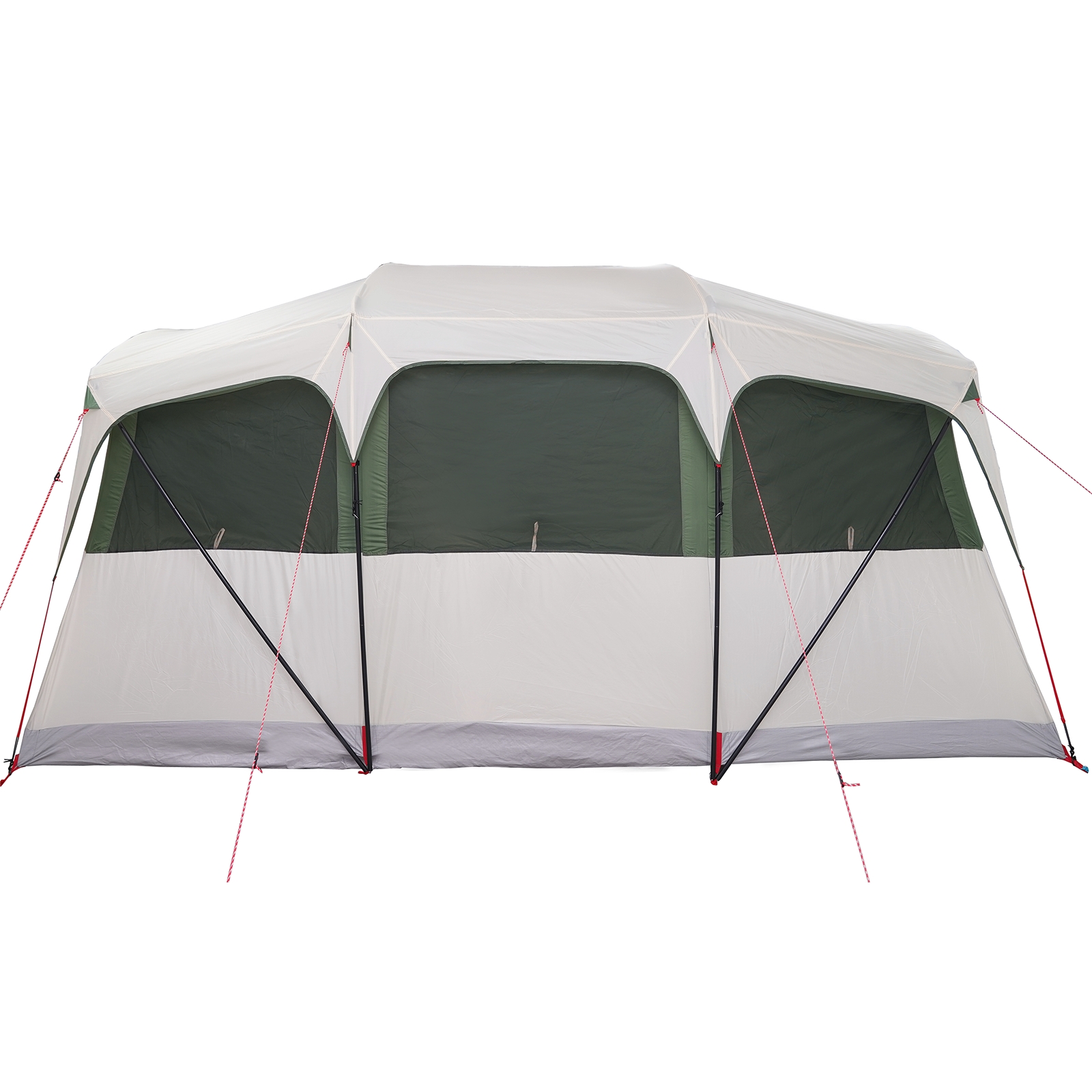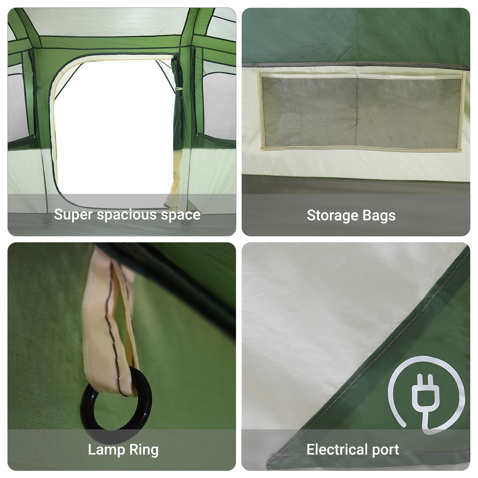 Das 10-Personen Campingzelt ist ideal für Familienabenteuer oder Spaß mit Freunden. Der große Innenraum eignet sich bestens für Schlafsäcke und Ausrüstung, perfekt für entspannte Tage im Freien. Geräumiges Design: Die großzügigen Maße von 255 cm Breite, 435 cm Länge und 216 cm Höhe machen dieses Zelt perfekt für größere Gruppen, die zusammen campen wollen. Seine rechteckige Form vermittelt ein Gefühl von Raum zum Entspannen oder Spielen. Wetterbeständig: Hergestellt aus wasserfestem Polyester und Fiberglas, bleibt dieses Zelt bei Regen trocken und blockiert schädliche UV-Strahlen, sodass du die Natur genießen kannst, ohne dir Sorgen ums Wetter zu machen. Die strukturierte Oberfläche erhöht zudem die Langlebigkeit. Tragbare Einrichtung: Das Zelt lässt sich leicht transportieren, da es kompakt zusammengefaltet werden kann und ist ideal für Camper, die gerne leicht reisen. Der Aufbau geht schnell, sodass du dich auf den Spaß konzentrieren kannst. Komplettpaket: Du bekommst alles, was du für einen stressfreien Campingausflug brauchst, wie Erdanker für Stabilität und eine praktische Tragetasche für den einfachen Transport. Verstellbare Komponenten: Das Zelt hat verstellbare Merkmale, die es dir erlauben, deine Einrichtung nach Komfort und Bedarf anzupassen, egal wie die Bedingungen außen sind.