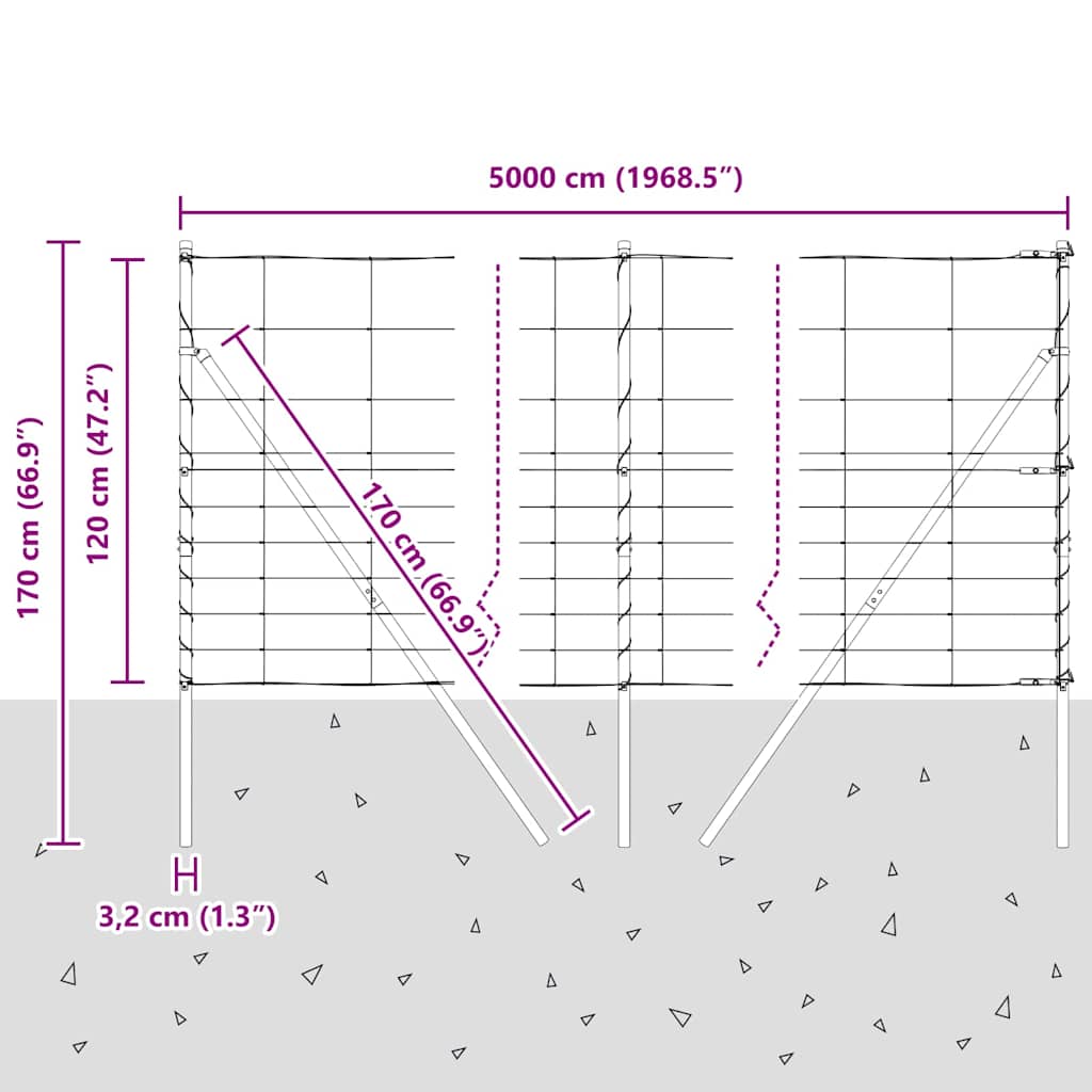 Dieser Feldzaun verbindet ein solides Design aus feuerverzinktem Stahl mit praktischer Anwendbarkeit. Er ist die zentrale Barriere für alle deine Außenaufgaben. Mit seinem schicken silber-grauen Finish und der robusten Bauweise bringt er nicht nur Sicherheit, sondern sieht auch noch gut aus im Garten, auf dem Bauernhof oder überall draußen. Robuste Bauweise: Der feuerverzinkte Stahl ist wetterfest und langlebig und sorgt für Sicherheit, egal bei welchem Wetter. Schneller Aufbau: Alle notwendigen Teile sind dabei, was die Montage zum Kinderspiel macht. Vielseitig einsetzbar: Ideal zum Markieren von Grenzen an verschiedenen Außenorten. Starkes Design: So gebaut, dass er auch bei rauem Wetter bleibt. Smartes Aussehen: Hat einen modernen Look, der deinem Außenbereich Stil verleiht und gleichzeitig funktioniert.