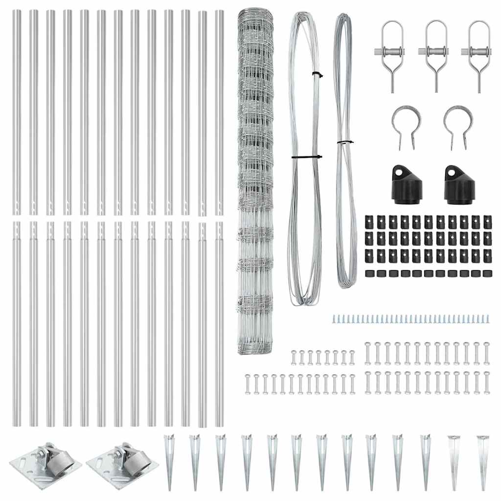 Dieser Feldzaun kombiniert robuste Bauweise aus verzinktem Stahl mit vielen Einsatzmöglichkeiten. Mit seiner glänzenden silbernen Oberfläche sichert er nicht nur deine Außenräume, sondern macht sie auch optisch ansprechender. Langlebige Konstruktion: Der UV-beständige verzinkte Stahl sorgt für eine langlebige Barriere und gibt dir Sicherheit in jeder Umgebung. Einfache Installation: Alle nötigen Teile für eine schnelle Montage sind enthalten, sodass du es in null Komma nichts aufstellst. Vielseitiger Einsatz: Perfekt für Außenbarrieren und erfüllt viele Anforderungen. Robustes Design: Die starken Pfosten mit Spike-Ankern garantieren Stabilität unter verschiedenen Bedingungen. Stylisches Aussehen: Dieser Zaun verpasst deinem Außenbereich einen modernen Look und erfüllt gleichzeitig seinen Hauptzweck.