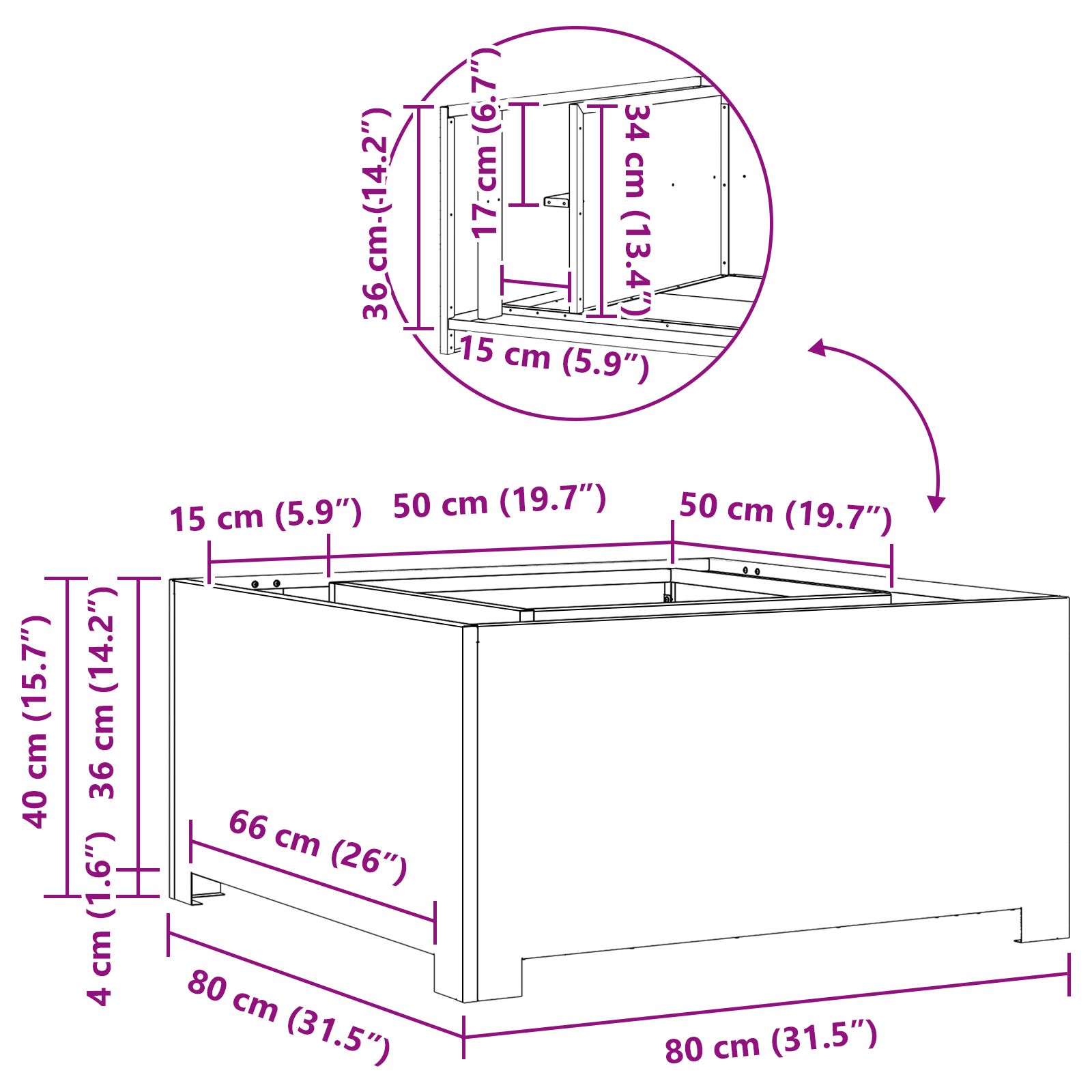 - Abmessungen: 80 x 80 x 30 cm (L x B x H)