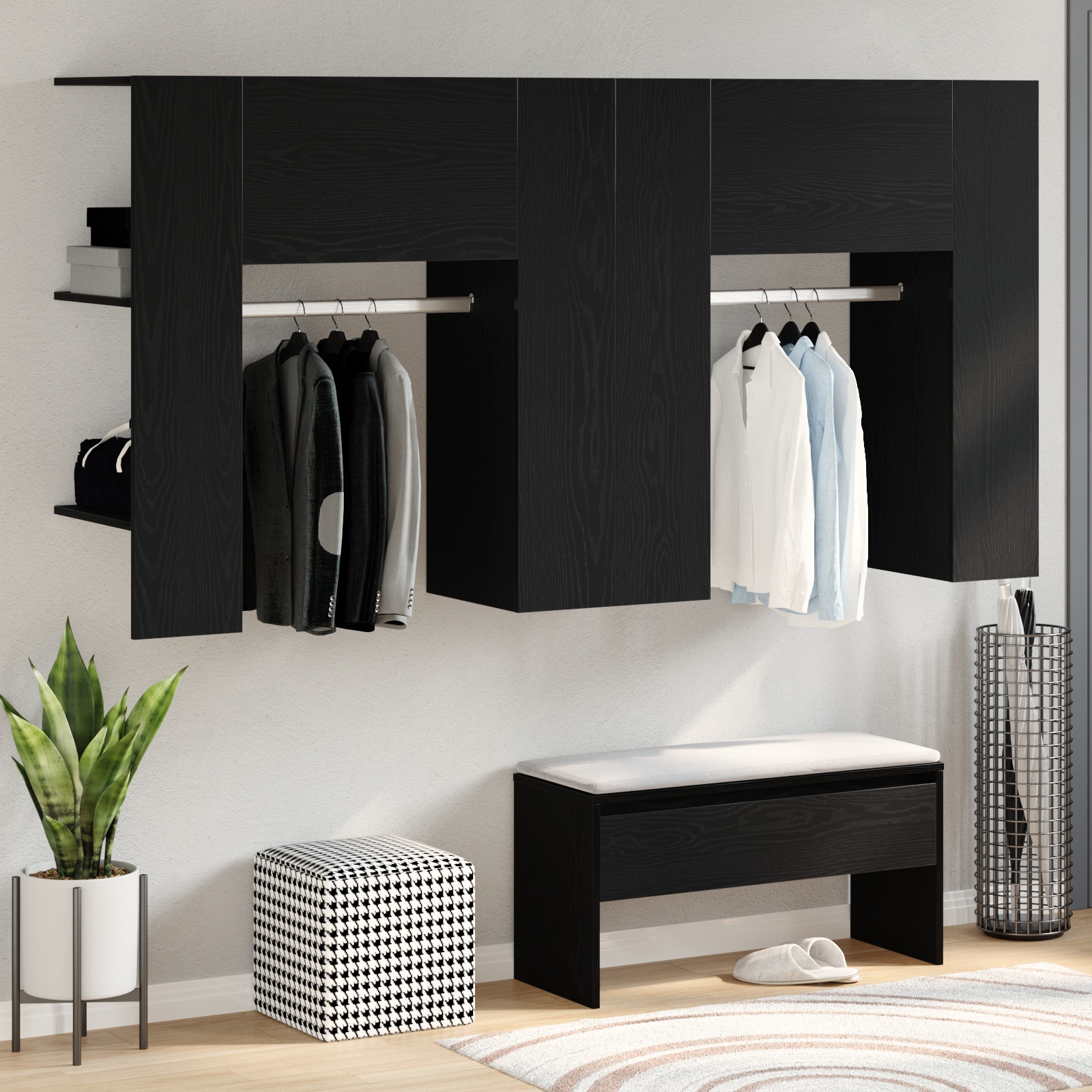 Dieses Set von Flurschränken kombiniert modernen Stil mit praktischen Stauraum und ist ideal für einen ordentlichen Eingangsbereich. Hergestellt aus hochwertigem Holzwerkstoff und mit einem schicken matten Schwarz-Eiche-Finish, bringen sie Stil in dein Zuhause und sorgen dafür, dass dein Flur toll aussieht. Das Stauraumset hat viel Platz, um Schuhe, Schlüssel und mehr zu organisieren. Das moderne Design passt perfekt zu verschiedenen Einrichtungsstilen und sieht elegant aus. Hergestellt aus robustem Holzwerkstoff, sind die Schränke langlebig und ideal für den täglichen Gebrauch. Der Aufbau ist einfach und macht Spaß dank klarer Anleitungen. Das matte Finish ist pflegeleicht und bleibt lange schön.