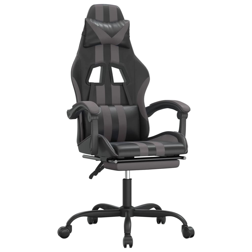 Gaming-Stuhl mit Fußstütze Drehbar Schwarz & Grau Kunstleder