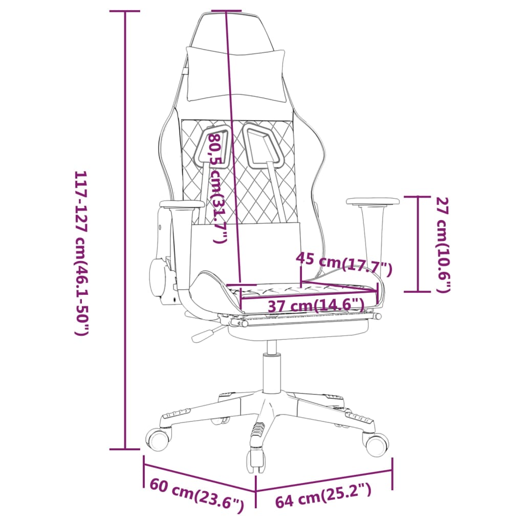 Genieße eine komfortable Sitzposition beim Spielen auf diesem einzigartigen Gaming-Stuhl und verbessere dein Spielerlebnis! Langlebiges Kunstleder: Hochwertiges Kunstleder ist ein äußerst langlebiges Material. Es ist schmutzabweisend und lässt sich mit einem feuchten Tuch einfach reinigen. Durch die glatte Oberfläche weist es die Schönheit von Echtleder und einen luxuriösen Look auf.Massagefunktion: Der Massagepunkt im Taillenbereich bekämpft Müdigkeit effektiv und sorgt für mehr Entspannung während der Arbeit.Verstellbare Rückenlehne und Höhe: Der Sessel ist mit Liegefunktion ausgestattet, sodass du Rückenlehne und Fußstütze je nach Belieben einstellen kannst. Verwende den Hebel, um die Sitzhöhe nach Bedarf zu verstellen.Praktisches Design: Der Stuhl lässt sich auch um 360 Grad drehen, um eine größere Bewegungsfreiheit zu ermöglichen. Darüber hinaus lässt sich der Stuhl dank Rollen bequem umher verschieben.Robustes und stabiles Gestell: Die Gestelle aus Metall und Sperrholz sorgen für Robustheit und Stabilität. Hinweis:Jedes Produkt wird mit einer Montageanleitung in der Verpackung für eine einfache Montage geliefert.Das Produkt verfügt über einen USB-Anschluss, aber die zertifizierte 5-V-USB-Stromquelle ist nicht im Lieferumfang enthalten.