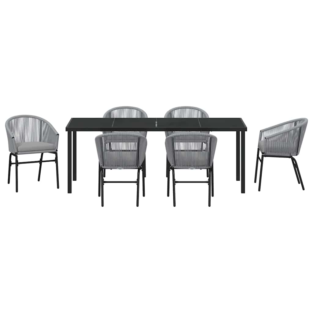 Das moderne Garten-Esszimmer-Set ist die ideale Mischung aus Stil und Funktionalität, um dein Outdoor-Erlebnis zu verbessern. Mit schlichten Linien und wenig Schnickschnack ist es der Inbegriff modernen Designs – perfekt für Frühlings- und Sommerfeiern in Garten oder auf Terrasse. Es ist speziell für draußen gemacht, verbindet die coole schwarze Oberfläche mit praktischen Eigenschaften und verwandelt jeden Außenbereich in einen gemütlichen Ort für intime Abendessen oder gesellige Zusammenkünfte. Materialien: Dieses Garten-Esszimmer-Set setzt auf robuste pulverbeschichtete Stahlrahmen, Poly-Rattan-Armelehnen und eine Glasoberfläche. Jedes Material wurde wegen seiner Langlebigkeit und schönen Optik ausgesucht, was zu einer schicken und langlebigen Präsenz in deinem Außenbereich führt. Der pulverbeschichtete Stahl bleibt stabil und sieht das ganze Jahr über toll aus. Enthaltene Komponenten: Das Set kommt mit einer schlichten, attraktiven Rückenlehne und einem abnehmbaren Sitzkissen mit einem versteckten Reißverschluss, das für Komfort sorgt. Dank der Kissen sitzt es sich gemütlich beim Essen, während die abnehmbaren Bezüge eine einfache Reinigung ermöglichen - für uneingeschränkten Genuss. Merkmale/Funktion/Design: Aus UV-beständigen Materialien gefertigt, widersteht das Set der direkten Sonneneinstrahlung, ohne zu altern, und ist eine langlebige Ergänzung für deinen Außenbereich. Die moderne rechteckige Form sorgt für den besten Platz im Freien und ist vielseitig für verschiedene Esskonfigurationen. Empfohlene Verwendung: Nur für den Außenbereich gedacht, fügt sich dieses Set super in Gärten und auf Terrassen ein. Sein modernes Design passt perfekt zu grünen Flächen und sorgt für einen harmonischen Look im Outdoor-Bereich. Bei einem Sommerbrunch oder Cocktails zum Sonnenuntergang ist dieses Esszimmer-Set ideal für alle Arten von Zusammenkünften. Pflege & Wartung: Um die Lebensdauer zu verlängern und das tolle Aussehen zu bewahren, solltest du eine Schutzhülle nutzen, wenn es nicht in Gebrauch ist. Dieser einfache Schritt schützt vor dem Wetter und sorgt dafür, dass das Set lange in Bestform bleibt, damit du viele schöne Momente draußen genießen kannst.