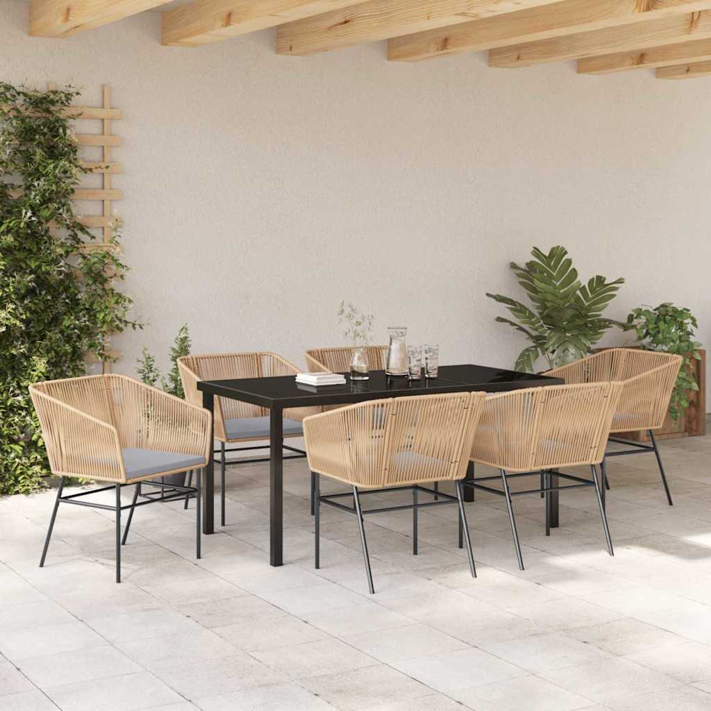 Dieses Garten-Esszimmer ist ein echtes modernes Highlight, ideal um deine Außenbereiche aufzuwerten. Mit seinem schicken, rechteckigen Design passt es perfekt auf Balkone oder Terrassen und lädt sowohl zum Relaxen als auch zum Essen ein. Stell dir vor, du genießt einen Brunch in der Sonne mit Freunden oder einen ruhigen Abend unter den Sternen. Der minimalistische Stil betont Einfachheit und Funktion, zeichnet sich durch klare Linien und schlichte Eleganz aus. Verwandle deine Terrasse in einen geselligen Ort oder deinen persönlichen Rückzugsort und genieße zeitlosen Stil kombiniert mit coolen Features! Materialien: Dieses Esszimmer ist hauptsächlich aus pulverbeschichtetem Stahl gebaut und strahlt Langlebigkeit sowie modernen Chic aus. Es ist zudem pflegeleicht und verfügt über eine tolle Balance zwischen Robustheit und Eleganz. Die Tischplatten aus Sicherheitsglas sehen nicht nur gut aus, sie garantieren auch zeitlose Schönheit. Diese durchdachte Materialwahl sorgt dafür, dass es langlebig und schick bleibt – perfekt für jede Außen-Deko. Enthaltene Komponenten: Alles – von Rückenlehne über Sitz, Armlehne bis Beine – ist aus robustem pulverbeschichtetem Stahl, was für Stabilität und Komfort sorgt. Die Tischplatten sind aus bruchsicherem Sicherheitsglas und bieten den perfekten Platz für famose Mahlzeiten oder entspannte Zusammenkünfte. Wetterfeste Außenkissen sind weich und praktisch, was es zur perfekten Lösung für Essen im Freien macht. Funktionen / Nutzung / Design: Das moderne Design des Sets spricht Leute an, die klare Linien und wenig Schnickschnack mögen. Der schlanke Look ist nicht nur hübsch, sondern auch durchweg funktional für draußen. Nutze es für fette Mahlzeiten oder als entspannte Sitzgelegenheit – es passt sich einfach an jede Veranstaltung oder Nutzungssituation an. Empfohlene Verwendungen: Nutze dieses Esszimmer in verschiedenen Außenbereichen wie Gärten, Terrassen oder Balkonen. Ideal für Familienmahlzeiten, gesellige Zusammenkünfte oder ruhige Momente – die Möbel bieten Stil und Komfort in jeden Kontext und auf die Bedürfnisse jeder Art Benutzer zugeschnitten. Pflege & Wartung: Halte das schicke Finish des Sets top, indem du die Oberflächen einfach mit einem trockenen Tuch abwischst, um die Schönheit lange zu bewahren. Bei schlechtem Wetter ist eine Abdeckung ratsam, um die Haltbarkeit noch weiter zu steigern. Saubere Pflege sorgt dafür, dass es über Jahre hinweg eine elegante und praktische Ergänzung für jeden Außenbereich bleibt.