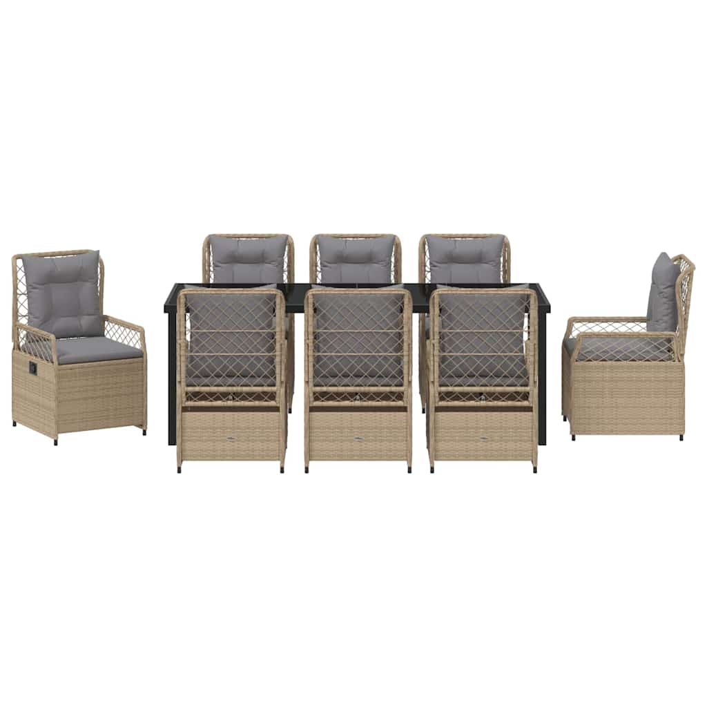 Dieses moderne Gartentisch-Set verbindet zeitgemäßes Design mit praktischer Funktionalität. Es eignet sich ideal für gesellige Runden im Freien und umfasst einen Tisch mit Glasoberfläche und komfortable Sitzgelegenheiten aus schaumstoffgepolstertem Poly-Rattan. Perfekt für alle, die stylische und gemütliche Außenbereiche lieben – es verwandelt jeden Garten oder jede Terrasse in einen Ort zum Entspannen. Poly-Rattan-Material Die Poly-Rattan-Konstruktion vereint Stil, Wetterbeständigkeit und Langlebigkeit. Sie ist für den Außeneinsatz gemacht, hält sogar bei hitzigen Sommertagen stand und bietet immer tollen Komfort. Ihr modernes Design integriert sich problemlos in jede Gartenästhetik und lässt sich leicht reinigen. Stylischer Rücken und Armlehnen Die Rücken- und Armlehnen sind aus Poly-Rattan gefertigt, das sowohl gut aussieht als auch bequem ist. Sie bieten tollen Sitzkomfort und runden das moderne Design ab. Zudem sorgen sie für ein harmonisches Gesamtbild und machen das Entspannen während der Mahlzeiten noch angenehmer. Robuste Sicherheitsglas-Tischplatte Die Tischplatte ist strapazierfähig und bietet eine schicke, kratzfeste Oberfläche. Unterstützt von einem Stahlgestell sorgt sie für Stabilität und verleiht deinem Outdoor-Bereich einen glanzvollen Touch, der Nützlichkeit und Attraktivität vereint. Verstellbare Rückenlehne Gestalte dein Sitzerlebnis nach Lust und Laune mit den mehrfach verstellbaren Rückenlehnen, die dir einfach erlauben, deinen Komfort anzupassen. So macht es gleich noch mehr Spaß, draußen zu chillen und du kannst lange Nachmittage oder gesellige Abende in vollen Zügen genießen. Einfache Montage und Pflege Für die Montage brauchst du lediglich einen Schraubendreher und zwei Personen. Halte die Möbel in Topform, indem du sie abdeckst, wenn sie nicht in Gebrauch sind. So bleibt alles schön und ordentlich. Der einfache Montage- und Pflegeprozess stellt sicher, dass deine Möbel lange schön bleiben.