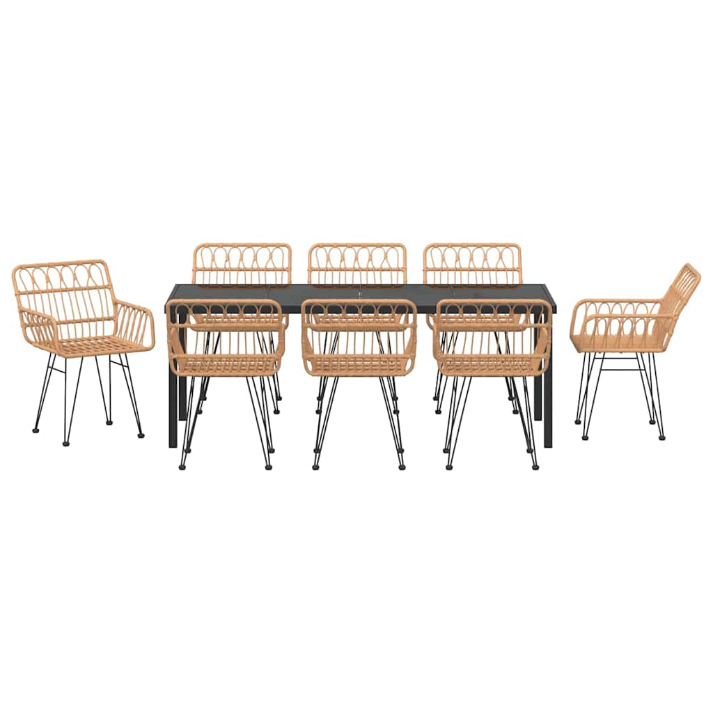Dieses rechteckige Garten-Esszimmer-Set ist der Inbegriff von modernem Stil und verwandelt deinen Außenbereich in eine stylische Erweiterung deines Zuhauses. Ideal für gesellige Runden im Frühling und Sommer verbindet es schlichtes Design mit Funktionalität. Die schlanken Linien und der klare Look bieten eine tolle Grundlage für all deine Outdoor-Aktivitäten. Premium Materialien Das Garten-Esszimmer-Set besteht aus poly Rattan für Sitz und Armlehnen, das bekannt für seinen Komfort und seine Wetterbeständigkeit ist. Der pulverbeschichtete Stahlrahmen sorgt für Stabilität und Langlebigkeit und hält auch intensivem Gebrauch stand. Die Auswahl dieser Materialien bringt Sicherheit für langfristigen Spaß im Freien. Durchdachtes Design Die rechteckige Form passt super zu verschiedenen Essenssituationen, egal ob du Gäste empfangst oder mit der Familie isst. Das Set erweitert den Raum für Interaktion und Gemütlichkeit, perfekt für entspannte Mahlzeiten unter der Sonne oder abendliche Stunden. Jedes Teil ist so designt, dass es Stil und Nutzen vereint und dir ein genussvolles Esserlebnis bietet. Wetterfeste Bauweise Die UV-beständigen Materialien sind so konzipiert, dass sie intensiver Sonnenstrahlung standhalten, ohne dass die Farben verblassen oder das Material leidet. Diese Eigenschaft sorgt dafür, dass dein Set saisonübergreifend schön bleibt und du im Freien ohne Sorgen genießen kannst. Moderne Eleganz Das schwarze pulverbeschichtete Finish bringt einen zeitgenössischen Touch und verleiht deinem Garten oder deiner Terrasse das gewisse Etwas. Dieses moderne Design passt zu vielen Dekorstilen, von trendy bis klassisch, und fügt sich nahtlos in verschiedene Umgebungen ein. Einfache Pflege Damit du lange Freude am Garten-Esszimmer-Set hast, ist es wichtig, bei Nichtbenutzung eine schützende Abdeckung zu nutzen. Das minimiert die Exposition gegenüber rauen Wetterbedingungen und hilft, den Zustand zu erhalten. Es ist leicht zu reinigen, was dein Leben einfacher macht.