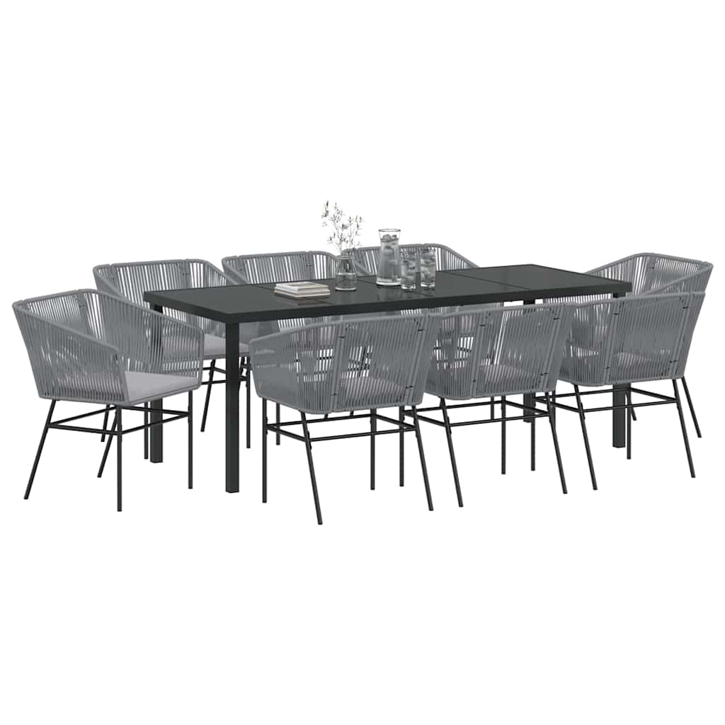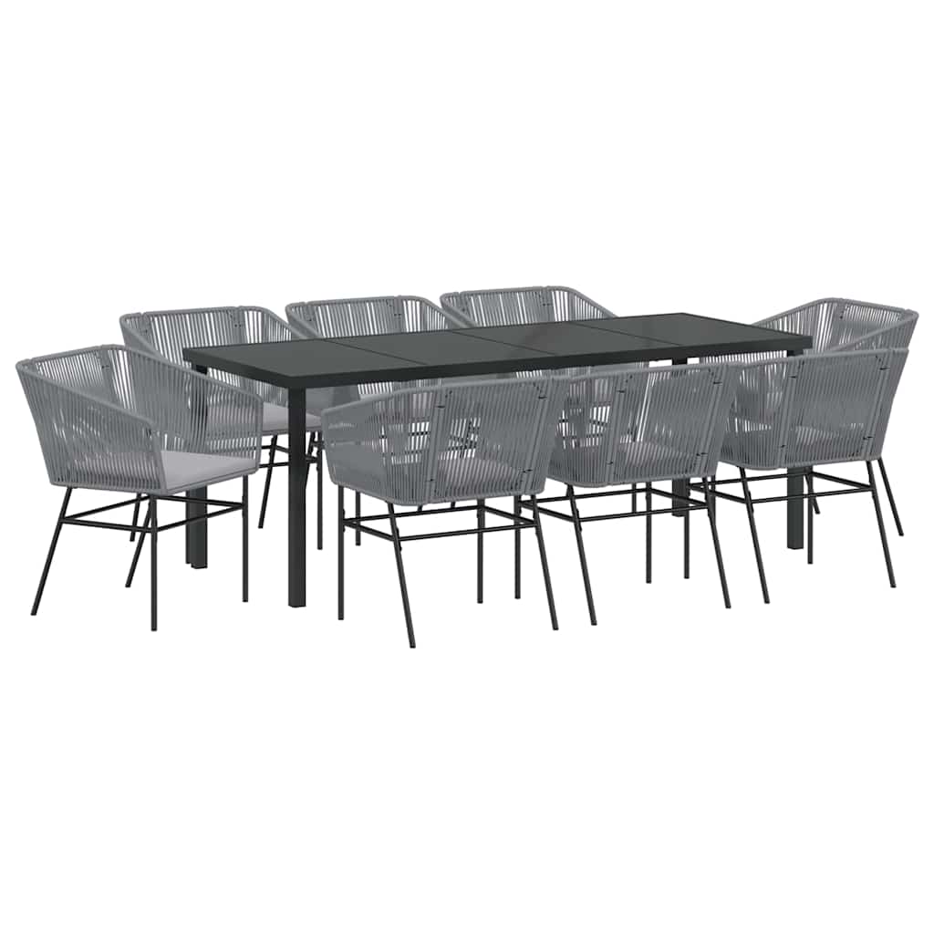 Dieses Garten-Esszimmer ist ein echtes modernes Highlight, ideal um deine Außenbereiche aufzuwerten. Mit seinem schicken, rechteckigen Design passt es perfekt auf Balkone oder Terrassen und lädt sowohl zum Relaxen als auch zum Essen ein. Stell dir vor, du genießt einen Brunch in der Sonne mit Freunden oder einen ruhigen Abend unter den Sternen. Der minimalistische Stil betont Einfachheit und Funktion, zeichnet sich durch klare Linien und schlichte Eleganz aus. Verwandle deine Terrasse in einen geselligen Ort oder deinen persönlichen Rückzugsort und genieße zeitlosen Stil kombiniert mit coolen Features! Materialien: Dieses Esszimmer ist hauptsächlich aus pulverbeschichtetem Stahl gebaut und strahlt Langlebigkeit sowie modernen Chic aus. Es ist zudem pflegeleicht und verfügt über eine tolle Balance zwischen Robustheit und Eleganz. Die Tischplatten aus Sicherheitsglas sehen nicht nur gut aus, sie garantieren auch zeitlose Schönheit. Diese durchdachte Materialwahl sorgt dafür, dass es langlebig und schick bleibt – perfekt für jede Außen-Deko. Enthaltene Komponenten: Alles – von Rückenlehne über Sitz, Armlehne bis Beine – ist aus robustem pulverbeschichtetem Stahl, was für Stabilität und Komfort sorgt. Die Tischplatten sind aus bruchsicherem Sicherheitsglas und bieten den perfekten Platz für famose Mahlzeiten oder entspannte Zusammenkünfte. Wetterfeste Außenkissen sind weich und praktisch, was es zur perfekten Lösung für Essen im Freien macht. Funktionen / Nutzung / Design: Das moderne Design des Sets spricht Leute an, die klare Linien und wenig Schnickschnack mögen. Der schlanke Look ist nicht nur hübsch, sondern auch durchweg funktional für draußen. Nutze es für fette Mahlzeiten oder als entspannte Sitzgelegenheit – es passt sich einfach an jede Veranstaltung oder Nutzungssituation an. Empfohlene Verwendungen: Nutze dieses Esszimmer in verschiedenen Außenbereichen wie Gärten, Terrassen oder Balkonen. Ideal für Familienmahlzeiten, gesellige Zusammenkünfte oder ruhige Momente – die Möbel bieten Stil und Komfort in jeden Kontext und auf die Bedürfnisse jeder Art Benutzer zugeschnitten. Pflege & Wartung: Halte das schicke Finish des Sets top, indem du die Oberflächen einfach mit einem trockenen Tuch abwischst, um die Schönheit lange zu bewahren. Bei schlechtem Wetter ist eine Abdeckung ratsam, um die Haltbarkeit noch weiter zu steigern. Saubere Pflege sorgt dafür, dass es über Jahre hinweg eine elegante und praktische Ergänzung für jeden Außenbereich bleibt.
