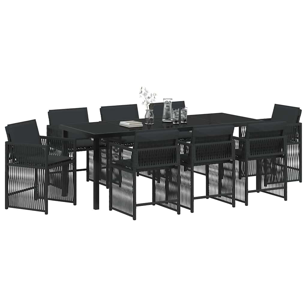 Garten Essgruppe 9 pcs Schwarz Poly-Rattan