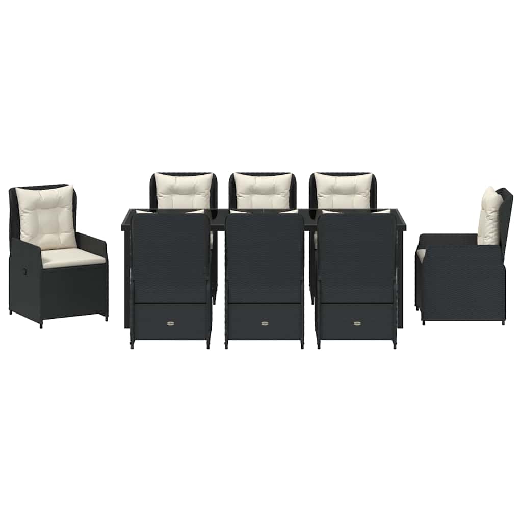 Dieses moderne Garten-Essset kombiniert Style und Funktionalität für jeden Außenbereich und bringt klare Linien und schicke Details mit. Mit seinem zeitgenössischen Look passt es perfekt in deinen Garten oder auf die Terrasse und lädt zu Feiern mit der Familie oder romantischen Abendessen im Freien ein. Hergestellt aus Poly-Rattan, fügt sich die glatte Textur super in die Umgebung ein und sorgt für den nötigen Komfort. Bring dein Draußeneating mit einer Kombination aus modernem Look und praktischen Features auf das nächste Level. Robuste Struktur: Das Garten-Essset ist aus langlebigem Poly-Rattan und mega stabil. So hält es Wind und Wetter aus und bleibt ein zuverlässiges Möbelstück in deinem Außenbereich, das dir immer Komfort und Stabilität bietet. Multi-Position Rückenlehne: Die verstellbaren Rückenlehnen bieten viele Winkel, damit jeder seine Lieblings-Sitzposition findet. Das erhöht den Komfort, egal ob du einfach nur chillst oder isst und macht es zum perfekten Ort zum Relaxen. Oberfläche aus Sicherheitsglas: Der Tisch hat eine Sicherheitsglasplatte, die super leicht zu reinigen und kratzfest ist. Das schlanke Design wertet die Gesamtoptik auf und bietet gleichzeitig eine praktische Fläche für Snacks und Drinks. Schmale Armlehnen: Mit den schmalen und geraden Armlehnen aus Poly-Rattan sorgt das Set für zusätzliches Wohlfühlen, ohne den minimalistischen Style zu stören. Diese Features fördern eine entspannte Haltung und geben dem Ganzen einen schicken Look. Mühelose Pflege: Um sicherzustellen, dass das Essset immer toll aussieht, solltest du es bei Nichtgebrauch abdecken, besonders wenn's mal schlechtes Wetter gibt. Diese simple Pflege hilft, die Optik und Funktionalität zu erhalten, damit es auch in den kommenden Jahren ein Blickfang in deinem Garten bleibt.