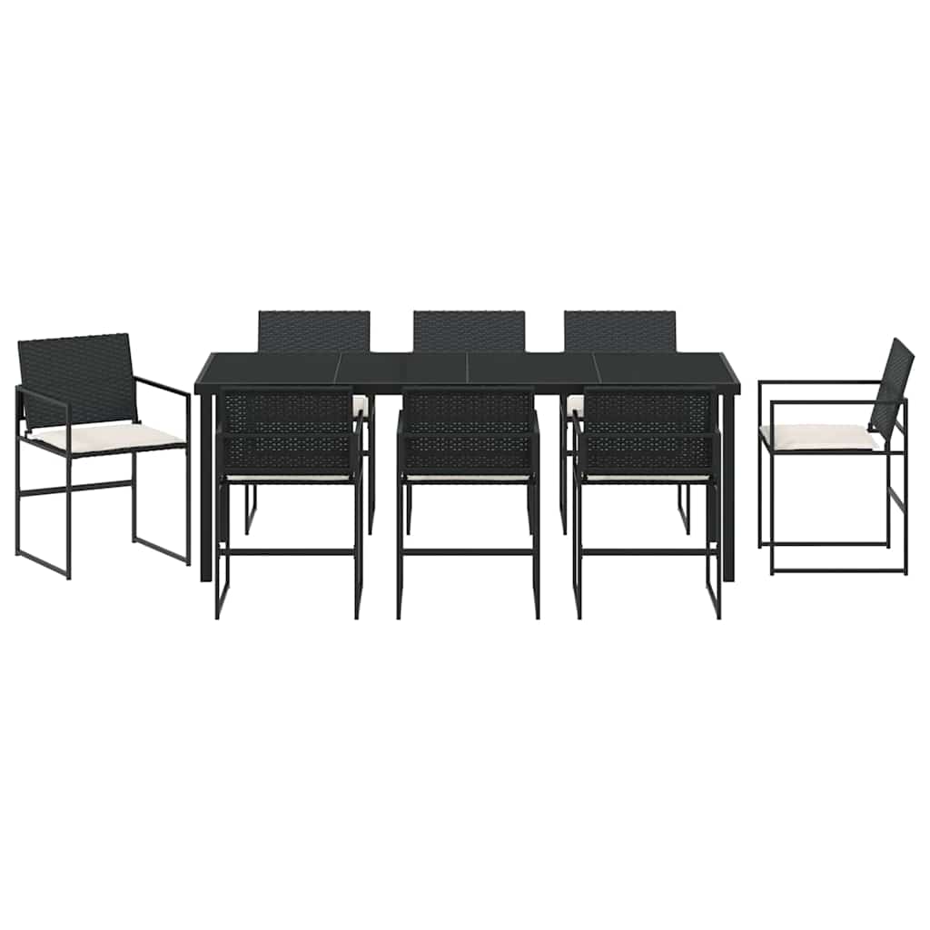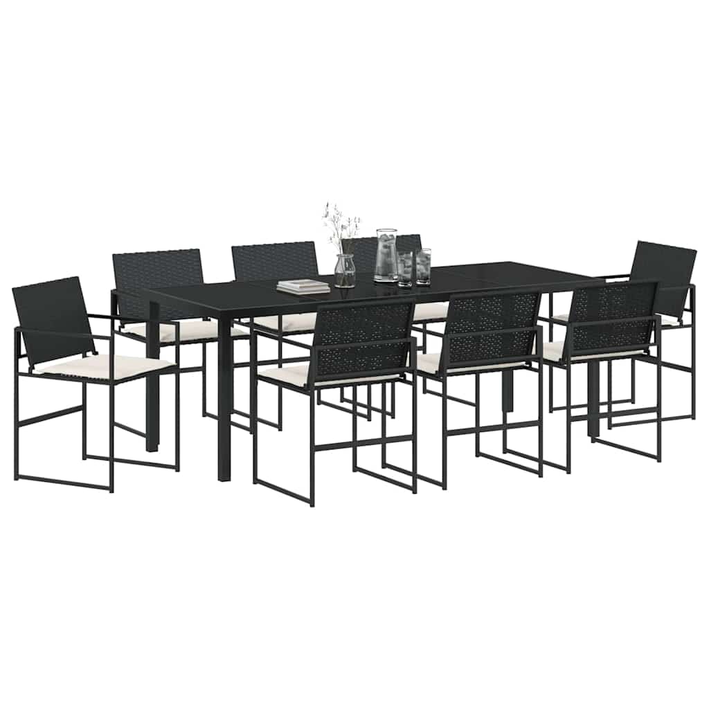 Dieses stylische Gartenset für das Esszimmer ist die perfekte Lösung für deine Outdoor-Events. Es fügt sich mühelos in jeden Garten oder jede Terrasse ein. Mit seinen klaren Linien und dem minimalistischen Look lädt das Set zum Relaxen und Chillen ein – perfekt für Feiern im Frühling und Sommer! Materialien: Dieser Set aus hochwertigem, pulverbeschichtetem Stahl für Rahmen und Beine sowie Poly-Rattan sieht nicht nur schick aus, sondern ist auch langlebig. Dieses Material wurde wegen seiner Stabilität und Wetterfestigkeit gewählt, damit du lange Freude daran hast, ohne viel Pflege. Enthaltene Komponenten: Das Esszimmer-Set hat fertige Rückenlehnen und sieht super elegant aus. Die Sitze lassen sich in der Höhe verstellen, und die Kissen haben einen Reißverschluss für extra Komfort. Robuste Armlehnen passen sich super an verschiedene Vorlieben an und sorgen für Behaglichkeit. Langlebig und widerstandsfähig: Hergestellt aus UV-beständigen Materialien, die der Sonne standhalten, ohne zu verwaschen. Du kannst das Set überall nutzen und bei jedem Wetter genießen. Die tolle Mischung aus Stil und Funktion macht das Set zu einer coolen Investition für unvergessliche Outdoor-Erlebnisse. Vielseitige Nutzung: Ideal für kleine Abendessen oder große Gartenpartys, verwandelt dieses Set jede Terrasse in einen einladenden Ort. Es lässt sich leicht anpassen und eignet sich perfekt für gesellige Zusammenkünfte oder einfach zum Entspannen, was es mega vielseitig macht. Pflege & Wartung: Um das Set lange schön zu halten, einfach abdecken, wenn du es nicht brauchst. Dadurch sieht das Set auch im nächsten Jahr noch super aus, was es für alle, die gerne draußen entspannen, bequem macht und den Pflegeaufwand klein hält.