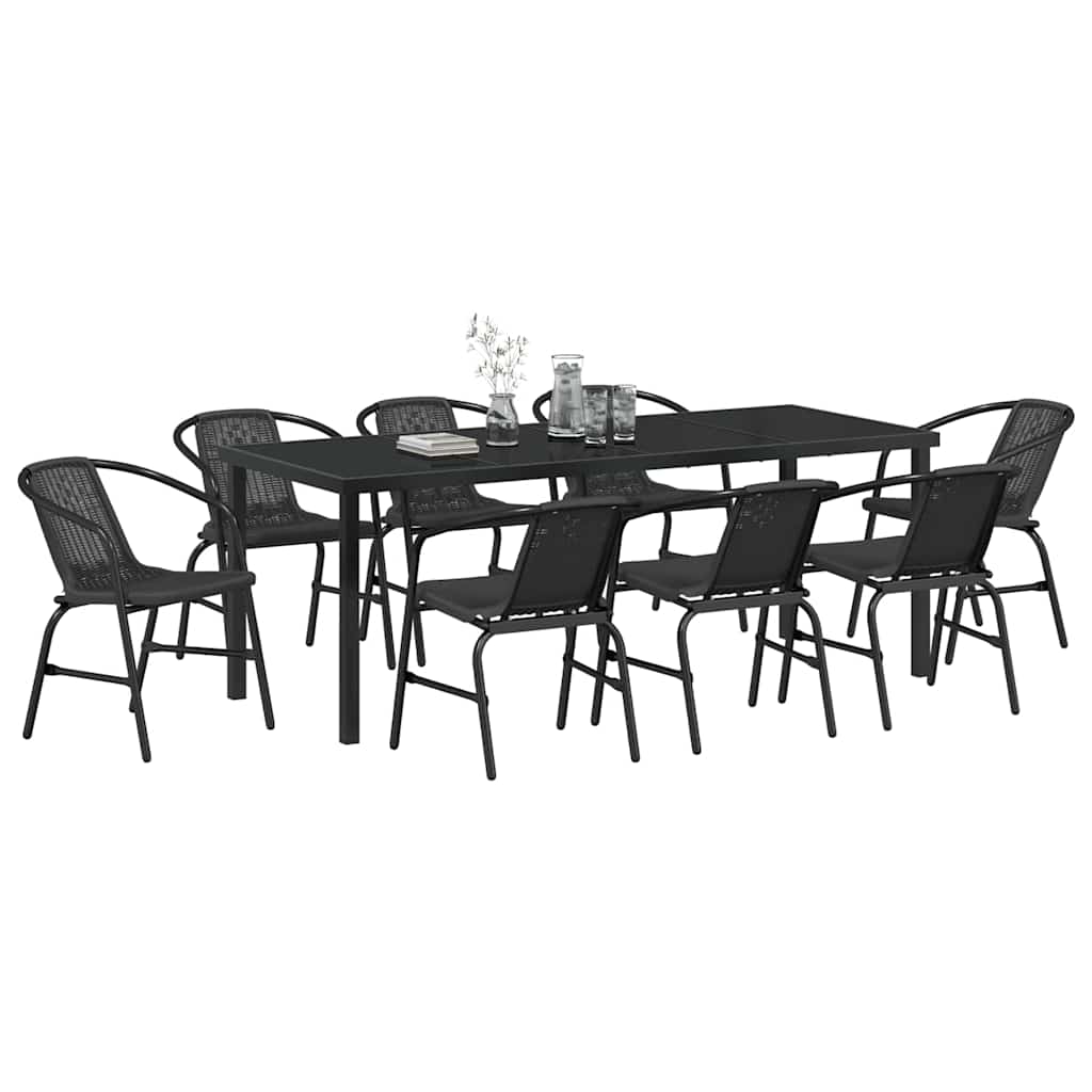 Dieses moderne Gartenset steht für Stil und Funktionalität. Mit seinem schlanken, pulverbeschichteten Stahlrahmen zieht es die Blicke auf sich und passt perfekt in Gärten und auf Terrassen. Es sorgt für eine einladende Atmosphäre bei entspannten Momenten oder offiziellen Anlässen. Die harmonischen Formen und der schicke Stil machen es zum Mittelpunkt jeder Outdoor-Geselligkeit, wo Freunde und Familie die klaren, minimalistischen Linien bewundern können. Hochwertige Materialien: Hergestellt aus robustem, pulverbeschichtetem Stahl, ist der Rahmen stabil und widersteht Abnutzung sowie UV-Licht. Das geflochtene poly rattan sorgt für eine weiche Berührung und maximalen Komfort. Diese kluge Materialwahl sorgt für Langlebigkeit und macht das Set zur besten Wahl für draußen. Gut definierte Komponenten: Mit elegant verarbeitetem Rückenteil sieht das Set von jeder Seite gut aus und fügt sich leicht in jede Umgebung ein. Die pulverbeschichteten Armlehnen bieten bequemen Halt, während die Sicherheitsglas-Oberflächen elegant wirken und easy zu reinigen sind. Funktionale Eigenschaften: Stabil und schick, zeigt dieses moderne Set eine klare Ästhetik, die perfekt für jede Gartenatmosphäre ist und einfach aufzubauen und zu nutzen ist. Seine rechteckige Form und der minimalistische Stil machen es zu einem flexiblen Teil für alle Anlässe. Vielseitige Nutzung: Ideal für Frühling- und Sommerfeiern, passt das Set super bei großen Gartenfesten oder kleinen Familienessen in der Sonne oder im Schatten. Es kann saisonübergreifend genutzt werden und sorgt für ein tolles Esserlebnis in der Natur. Einfache Pflege und Wartung: Um das schicke Aussehen zu erhalten, schütze das Set mit Abdeckungen, wenn du nicht draußen bist, damit es lange schön bleibt. Mit minimalem Aufwand ist es leicht zu reinigen und behält die Funktionalität, die bei jedem Essen wichtig ist.