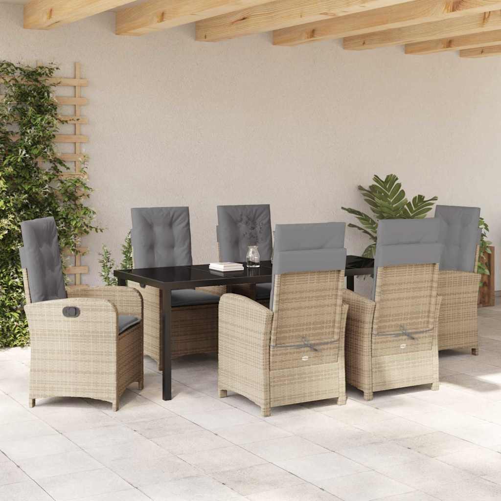 Garten Essgruppe mit Kissen 7 pcs Beige Poly-Rattan
