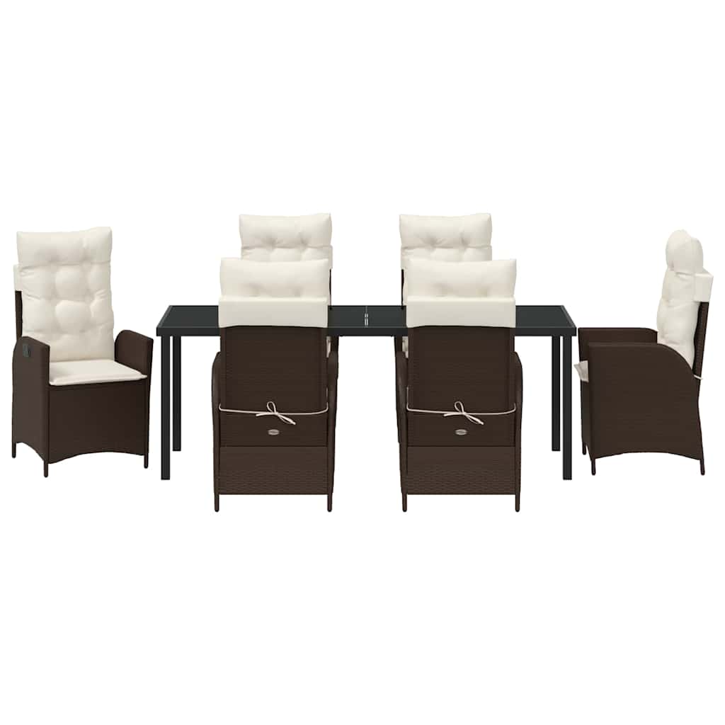 Das Modern Garden Dining Set bereichert jede Terrasse, Veranda oder jeden Garten mit seinem schlanken, minimalistischen Design. Es ist für den Sommer konzipiert und kombiniert clever Poly-Rattan, Glas und Stahl. Die gewobene Poly-Rattan-Oberfläche sorgt für Eleganz und einen zeitlosen Stil, während der stabile Stahlrahmen für Sicherheit bei deinen Essen im Freien sorgt. Es ist perfekt für Outdoor-Events und bringt eine gehobene Atmosphäre für unvergessliche Mahlzeiten mit der Familie oder Freunden. Haltbare Konstruktion: Das Modern Garden Dining Set nutzt eine Materialkombination, die widerstandsfähig gegen verschiedene Wetterbedingungen ist. Poly-Rattan sorgt für eine angenehme Textur und ist beständig gegen UV-Strahlen und Feuchtigkeit. Ein robuster Stahlrahmen garantiert Stabilität, sodass du sorgenfrei draußen entspannen kannst. Glasoberfläche Tischplatte: Der Tisch hat eine stilvolle schwarze Glasoberfläche, die einfach zu reinigen ist. Diese hochwertige Oberfläche gibt deinem Garten nicht nur einen modernen Look, sie ist auch stabil für Mahlzeiten und Deko-Arrangements. Es verbessert die Funktionalität und die ästhetische Anziehungskraft. Verstellbarer Komfort: Dank einer Rückenlehne, die sich in mehrere Positionen verstellen lässt, kannst du den perfekten Winkel für dein Wohlbefinden finden. So kannst du entspannt Zeit mit deinen Liebsten verbringen, egal ob beim Essen oder Chillen. Diese Flexibilität stellt sicher, dass jeder seinen idealen Platz findet. Ergonomische Merkmale: Genieße die sanften Armlehnen aus Poly-Rattan und die schlanken Pfostenbeine, die perfekt in das moderne Design passen. Jedes Detail trägt zu einem angenehmen Erlebnis bei und gibt dir ergonomischen Halt, ohne auf Stil zu verzichten. Die Sitzanordnung gewährleistet maximalen Komfort. Pflegeanleitungen: Verwende eine Schutzhülle, wenn das Set gerade nicht genutzt wird, um es vor schlechtem Wetter zu schützen. Kümmer dich um dein Möbelstück mit diesen einfachen Tipps, damit du die Eleganz und Anmut des Sets lange genießen kannst.