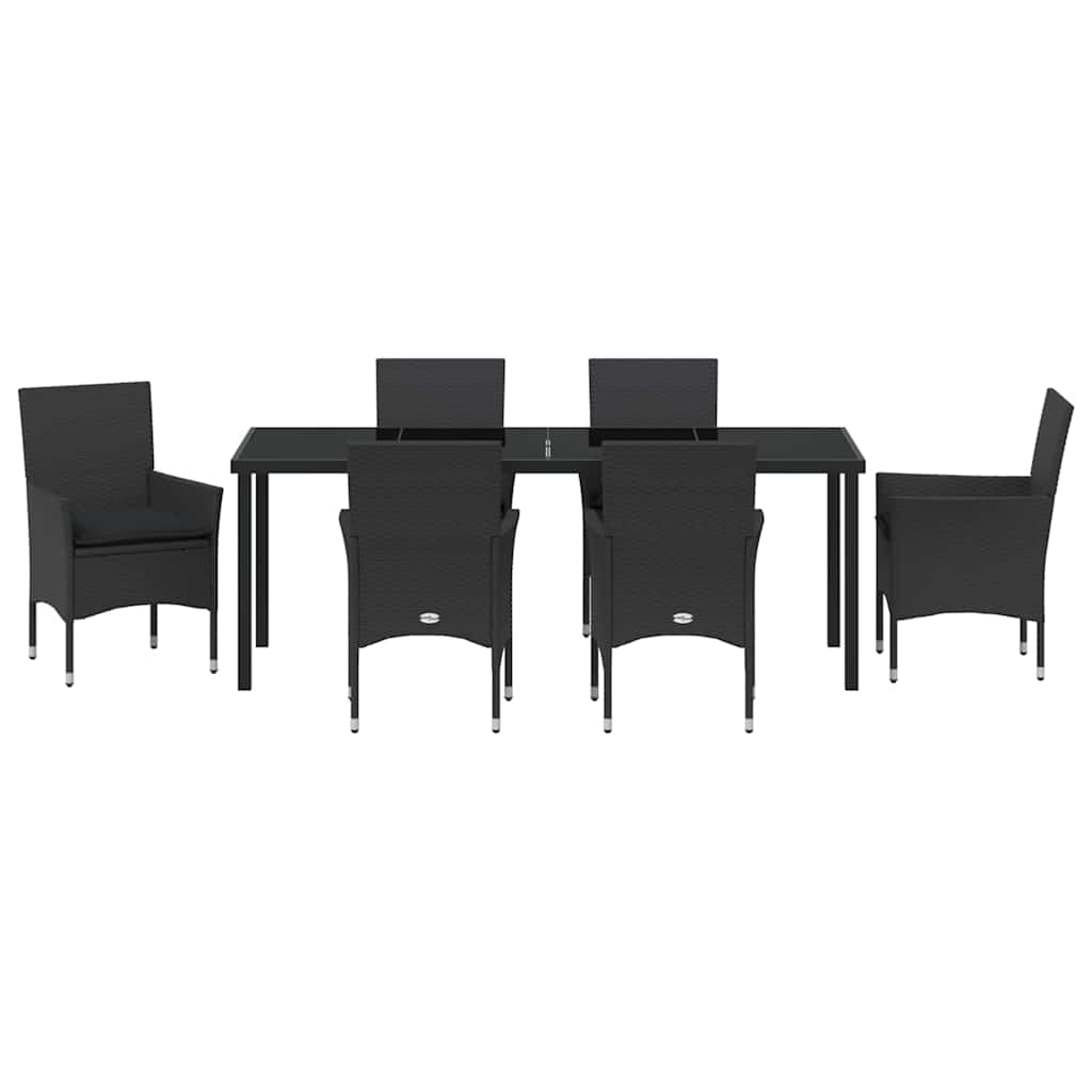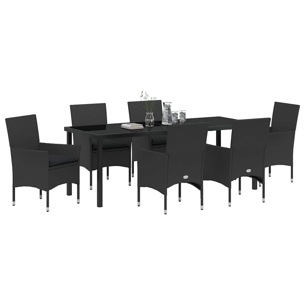 Dieses moderne Garten-Dining-Set ist eine stylische und praktische Wahl für jeden Außenbereich und die perfekte Lösung für al fresco-Dining. Es kombiniert coole Einfachheit mit praktischer Funktionalität und passt super in Gärten und auf Terrassen. Die klaren Linien und der schlichte Stil spiegeln eine moderne Ästhetik wider, die in viele Außenbereiche passt und aus hochwertigen Materialien für den Sommer gefertigt ist. Stylishes Poly-Rattan-Gestell Der Rahmen aus Poly-Rattan sieht nicht nur modern aus, sondern hält auch Wind und Wetter stand. Es ist robust und pflegeleicht, was es zur perfekten Wahl für jeden Außenbereich macht. Wetterfeste Tischplatte Mit der Tischplatte aus Sicherheitsglas ist dein Dining-Set bestens gegen die Elemente gewappnet. Das Glas bringt Eleganz und bietet eine glatte, stabile Fläche für Essen und Feiern – perfekt für jedes Garten- oder Terrassen-Setting. Gemütliche Kissen Die Sitzkissen kommen mit abnehmbaren und waschbaren Bezügen – so ist Pflege super einfach. Gefüllt mit Schaumstoff, laden sie zum Entspannen ein, sodass du fröhliche Sommernachmittage oder wilde Dinnerpartys genießen kannst. Praktische Armlehnen Die Stühle haben ergonomische Poly-Rattan-Armlehnen, die dir eine gute Unterstützung bieten und für extra Komfort sorgen. Die flachen Armlehnen sehen modern aus und sind sehr funktional für den Alltag. Flexibel anpassbar Dank der leichten, pulverbeschichteten Stahlbeine kannst du die Sitzanordnung ganz einfach umstellen. Mit nur einem Schraubendreher und zu zweit ist der Zusammenbau ein Klacks und sorgt dafür, dass du für unterschiedliche Anlässe gut gerüstet bist.