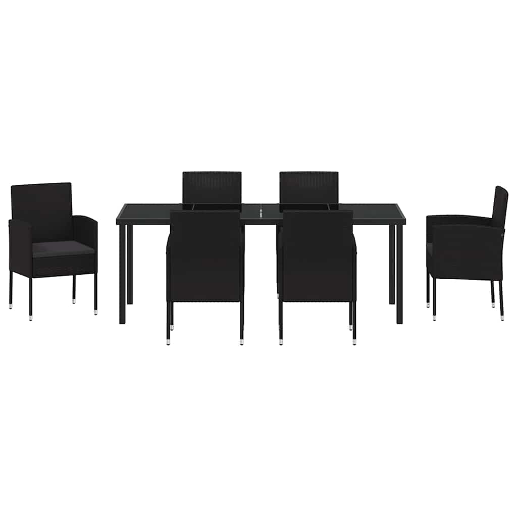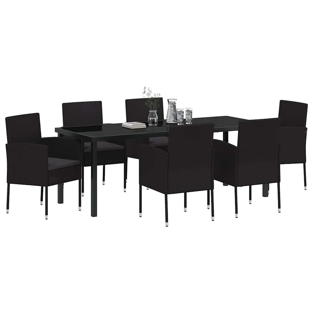 Dieses moderne Garten-Esszimmer-Set bringt zeitgemäßen Style und Funktionalität in deinen Garten. Perfekt für Mahlzeiten im Freien, ob für entspannte Familienessen oder intime Abende. Mit seinem schlanken Look und minimalistischen Design verleiht es jedem Außenbereich eine unaufdringliche Eleganz. Ideal für Frühling und Sommer, sorgt das Set für einen besonderen Flair bei deinen Outdoor-Zusammenkünften. Materialien: Das Esszimmer-Set nutzt eine super Kombination aus robustem Poly-Rattan, das UV-beständig ist, und einer Sicherheitsglas-Tischplatte. So bleibt es gut in Form und zeigt sich wetterfest. Die kluge Materialwahl sorgt dafür, dass das Set immer stylish aussieht, egal in welcher Saison. Beinhaltete Komponenten: Mit ausreichend Platz bietet das Set einen stabilen Tisch mit elegantem Sicherheitsglas und bequeme Stühle mit Polstern. Bequeme Poly-Rattan-Armlehnen sorgen für einen entspannten Vibe, während der Tisch viel Platz für dein Essen bietet. Jede Komponente verbessert dein Essen im Freien. Merkmale/Funktion/Design: Hier trifft Style auf praktische Leichtigkeit! Die pulverbeschichteten Stahlteile lassen sich schnell umstellen für verschiedene Anlässe oder Layouts. Das stabile Design bietet dir Sicherheit und bleibt trotzdem leicht zu bewegen. So ist das Set eine coole Ergänzung für jeden Garten. Empfohlene Anwendungen: Super für Gärten und Terrassen, ist dieses Esszimmer-Set perfekt für sommerliche Partys oder um draußen zu essen. Es eignet sich für alles von lockeren Familienfrühstücken bis hin zu tollen Feiern mit Freunden. Das Set ist dafür gemacht, allen Wetterbedingungen zu trotzen. Pflege & Wartung: Halte das Set immer schick, indem du es abdeckst, wenn du es nicht nutzt. Die Kissen sollten trocken bleiben, um Probleme mit Feuchtigkeit zu vermeiden. Für die Glasfläche nutze einfach ein weiches Tuch, damit sie stets einladend aussieht für dein Dinner-Event.