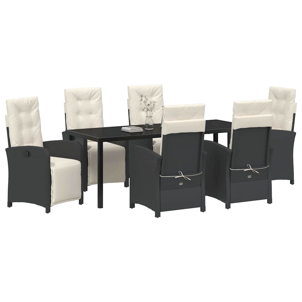 Dieses moderne Garten-Dining-Set verwandelt jeden Außenbereich in einen stylischen Essplatz, der Einfachheit und Funktionalität vereint. Ideal für sommerliche Feiern, zeigt der Poly-Rattan-Rahmen mit der Glasoberfläche einen modernen Charme und schafft einen einladenden Platz für geselliges Beisammensein mit Familie und Freunden. Es ist der Mittelpunkt für gemütliche Mahlzeiten sowie lebhafte Events und fügt sich nahtlos in die Gartenaesthetik ein, während es den Übergang vom Innen- ins Außenleben erleichtert. Haltbare Materialien: Das Set ist aus wetterbeständigem Poly-Rattan gefertigt, das immer gut aussieht. Der Stahlrahmen sorgt dafür, dass alles stabil bleibt und viel aushält, ob im Alltag oder bei besonderen Anlässen. Funktionale Komponenten: Inklusive einer polierten, gehärteten Glasoberfläche – schick und leicht zu reinigen. Die manuell verstellbaren Rückenlehnen bieten verschiedene Liegepositionen für den Komfort deiner Gäste. Ergonomische Merkmale: Mit Schienen-Armlagen und dünnen Sitzpolstern für bequemen Sitz. Es bietet einen tollen Stil, ohne überladen zu wirken. Das Pfosten-Bein-Design sorgt für Stabilität und Sicherheit während der Nutzung. Vielseitige Nutzungsmöglichkeiten: Super geeignet für Gärten oder Terrassen, ideal für entspannten Brunch in der Sonne oder für romantische Abendessen unter dem Sternenhimmel. Passt gut in städtische und vorstädtische Umgebungen. Pflegehinweise: Halte dein Dining-Set in Top-Zustand mit einer wetterfesten Abdeckung, wenn es nicht verwendet wird. Der Aufbau erfordert zwei Personen und einen Schraubendreher – so sorgt es für stabile Nutzung in verschiedenen Außenbereichen.