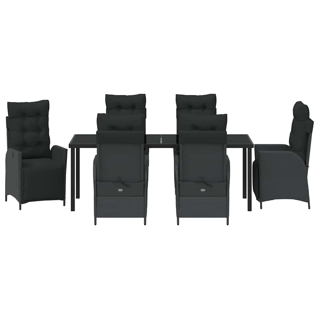Dieses verstellbare Garten-Dining-Set bringt moderne Schlichtheit und Funktionalität mit cleanen Linien und wenig Schnickschnack. Es ist ideal fürs Essen im Freien in deinem Garten oder auf der Terrasse und bietet Stil und Komfort für deine Sommer-Treffen. Die rechteckige Form und das zeitgemäße Design ergänzen jede Outdoor-Deko und laden zu netten Mahlzeiten und entspannten Gesprächen in der Natur ein. Jedes Detail ist so gestaltet, dass es sich nahtlos in die Umgebung einfügt, während die praktischen, verstellbaren Funktionen dein Erlebnis verbessern. Poly-Rattan und Stahlkonstruktion: Das Dining-Set besteht aus Poly-Rattan und pulverbeschichtetem Stahl, sorgt für Wetterbeständigkeit und ein modernes Aussehen. Der Poly-Rattan sorgt für visuelle Anziehung und stabilisiert das Set. Verstellbarkeit: Mit einem Griff, um die Fußstützen auf verschiedene Höhen einzustellen, kann jeder seinen Platz bequem anpassen. Ideal zum Entspannen im Garten, verleiht diese Funktion dem Set eine vielseitige Note. Einbeziehung von Komponenten: Das Set hat gepolsterte Sitzkissen aus weichem Polyester für zusätzlichen Komfort. Die Tischplatte aus gehärtetem Glas ist pflegeleicht und sieht schick aus. Praktische Verwendung: Perfekt für Terrassen, Gärten und Patios. Ob beim Sommeressen oder einem ruhigen Nachmittagstee, es passt sich jeder Gelegenheit an. Pflege & Wartung: Einfache Pflege, indem du eine Schutzhülle verwendest, wenn es nicht gebraucht wird. So bleibt das Set über längere Zeit in einwandfreiem Zustand und erhöht die Langlebigkeit.