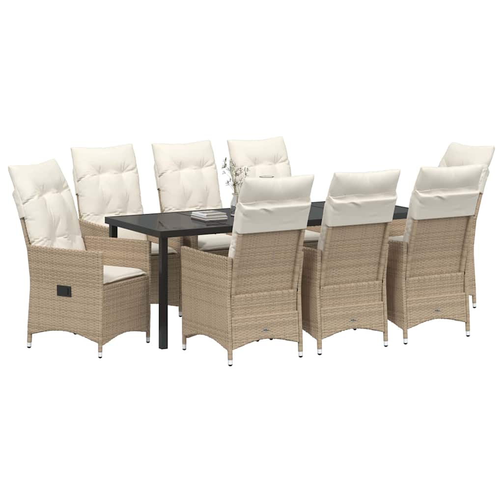 Dieses Garten-Esszimmer-Set ist die perfekte Kombination aus modernem Design und praktischem Nutzen. Es ist ideal für deine Sommerpartys auf der Terrasse oder dem Patio und punktet mit klaren Linien und wenig Schnickschnack, die den Außenbereich elegant wirken lassen. Das Set bringt frischen Wind in jeden Garten mit einem Design, das sich an moderne Außenräume anpasst. Es ist so durchdacht, dass es zu den Bedürfnissen deiner Familie passt und das Essen unter freiem Himmel noch schöner macht. Poly-Rattan-Materialien Dieses Garten-Esszimmer-Set aus hochwertigem Poly-Rattan ist UV-beständig und hält verschiedenen Wetterbedingungen stand. Es sieht auch nach längerer Nutzung gut aus und bietet ein angenehmes Outdoor-Gefühl. Komponentenübersicht Jede Teil des Sets – von den Poly-Rattan-Armlehnen bis zur Glasoberfläche – ist clever gestaltet, um dir Sitzkomfort und Essvergnügen zu bieten. Manuelle Anpassungen erhöhen die Flexibilität und die flachen Armlehnen sorgen für eine entspannte Haltung. Das macht deine Treffen sowohl stylish als auch bequem. Funktionalität und Design Dieses Esszimmer-Set deckt alle praktischen Bedürfnisse ab – ideal für Familienessen oder entspannte Kaffeepausen. Es ist leicht zu bewegen und die mehrstufigen Rückenlehnen erweitern den Komfort entsprechend deinen Vorlieben. Vielseitige Anwendungen Perfekt für Gärten, Terrassen und alle Außenbereiche, dieses Set ist das ganze Jahr über nützlich. Es eignet sich für alles, von Brunch im Sommer bis zu Abendveranstaltungen und macht jede Zusammenkunft unvergesslich. Einfache Pflege und Wartung Pass gut auf das Set auf, verwende eine Abdeckung, wenn du es nicht brauchst. Die abnehmbaren und waschbaren Kissenbezüge erleichtern die Reinigung und halten das Set immer einladend.