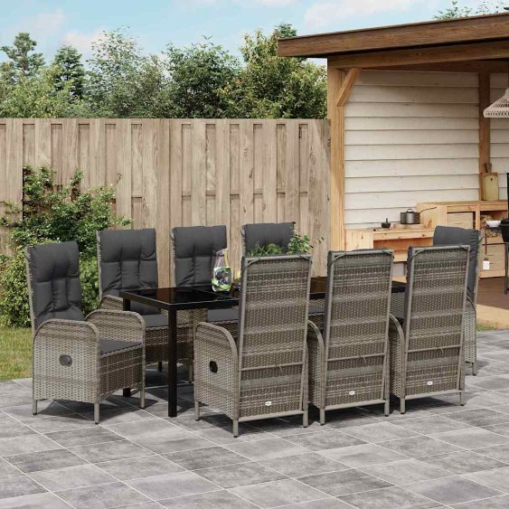 Dieses moderne Garten-Dinning-Set bietet dir schlichte Eleganz und Funktionalität in einem stylischen Design, das jeden Außenbereich aufwertet. Es ist für das ultimative Erlebnis im Freien gedacht und hat klare Linien und eine auffällige Silhouette, die zum Entspannen und Zusammensitzen einlädt. Materialexzellenz: Das Dinning-Set besteht aus poly rattan, das für seine UV-beständigen Eigenschaften bekannt ist und seine Schönheit auch unter der Sonne lange behält. Der robuste pulverbeschichtete Stahlrahmen sorgt für eine stabile Basis und Verlängerung der Lebensdauer im Freien, ideal für Sommer-Veranstaltungen. Enthaltene Komponenten: Jedes Stück hat eine Tischplatte aus gehärtetem Glas, die leicht zu reinigen ist und stylisch aussieht, während die poly rattan-Sitze mit wetterfesten Kissen für extra Komfort sorgen. Diese Kombination verbessert jedes Dinning-Erlebnis mit Stil und Bequemlichkeit. Komfort und Design: Das Set kommt mit sanft geschwungenen Armlehnen und einem modernen Rücken, was das durchdachte Design zeigt, das Ästhetik und Ergonomie verbindet. Die leichte Bauweise erleichtert das Umstellen für verschiedene Anlässe und verleiht deinem Garten oder deiner Terrasse einen coolen Look. Praktische Verwendung: Optimal für Terrassen, Gärten und Balkone, passt sich dieses Set an verschiedene Außenumgebungen an. Sein schickes Aussehen harmoniert mit modernen Ästhetiken und schafft einen tollen Raum für gesellige Abende oder entspannte Mahlzeiten im Freien. Pflegeanleitung: Um das Aussehen zu erhalten, decke die Möbel ab, wenn du sie nicht benutzt. Diese einfache Pflegemaßnahme sorgt für Langlebigkeit und erhält die Attraktivität, damit du sorglos im Freien chillen kannst, ohne dir über Abnutzung oder Schäden Gedanken machen zu müssen.