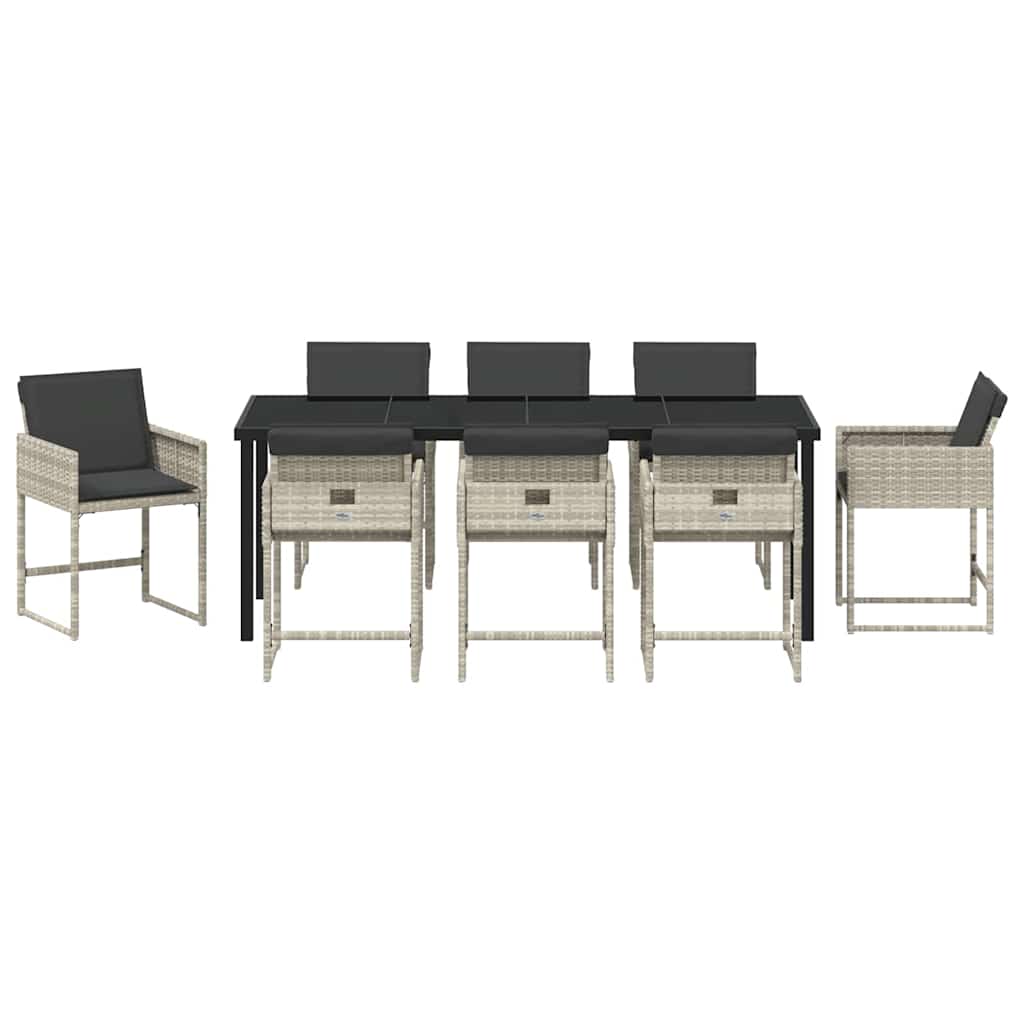 Dieses moderne Garten-Dining-Set bringt den zeitgenössischen Lebensstil nach draußen, indem es Stil und Funktionalität einfach kombiniert. Umgeben von elegantem Poly-Rattan hat es eine stabile gehärtete Glasoberfläche, die minimalistisches Design zeigt und sich super in Gärten und auf Terrassen einfügt. Es ist perfekt für den Außenbereich, damit Familie und Freunde zusammenkommen und leckeres Essen im Freien genießen können, während sie die gemütliche Atmosphäre genießen. Hochwertige Materialien: Das Set besteht aus strapazierfähigem Poly-Rattan, was für einen coolen Look sorgt und gleichzeitig langlebig ist. Die gehärtete Glasfläche bietet Eleganz und ist pflegeleicht. Zusammen ergeben sie eine ansprechende und robuste Kombination, perfekt für das Essen im Freien. Stylisches Rückendesign: Das coole Rückendesign lässt das Möbelset von allen Seiten gut aussehen. Diese durchdachte Gestaltung sorgt dafür, dass der Essbereich einladend und schick wirkt und perfekt ist, um Gäste im Garten zu empfangen. Praktische Eigenschaften: Das Set ist modern und funktional, leicht und stabil. Das macht es einfach, das Set schnell umzustellen oder zu bewegen, je nach Anlass oder Stimmung. Sein flexibles Design passt super in diverse Außenbereiche. Empfohlene Nutzung: Perfekt für sonnige Tage, das Set passt klasse in Gärten, auf Terrassen und Veranden. Es bietet einen angenehmen und stilvollen Ort für Sommerfrühstücke, Nachmittagskaffees oder entspannte Gartenpartys, bei denen unvergessliche Momente entstehen. Pflege & Wartung: Um die Qualität und das Aussehen des Sets zu erhalten, nimm eine Abdeckung, wenn es nicht in Gebrauch ist. So schützt du es vor Witterungseinflüssen und verlängerst die Lebensdauer. Halte dich an diese einfachen Pflegehinweise, damit das Essset immer in einem top Zustand bleibt.