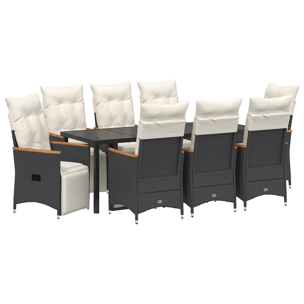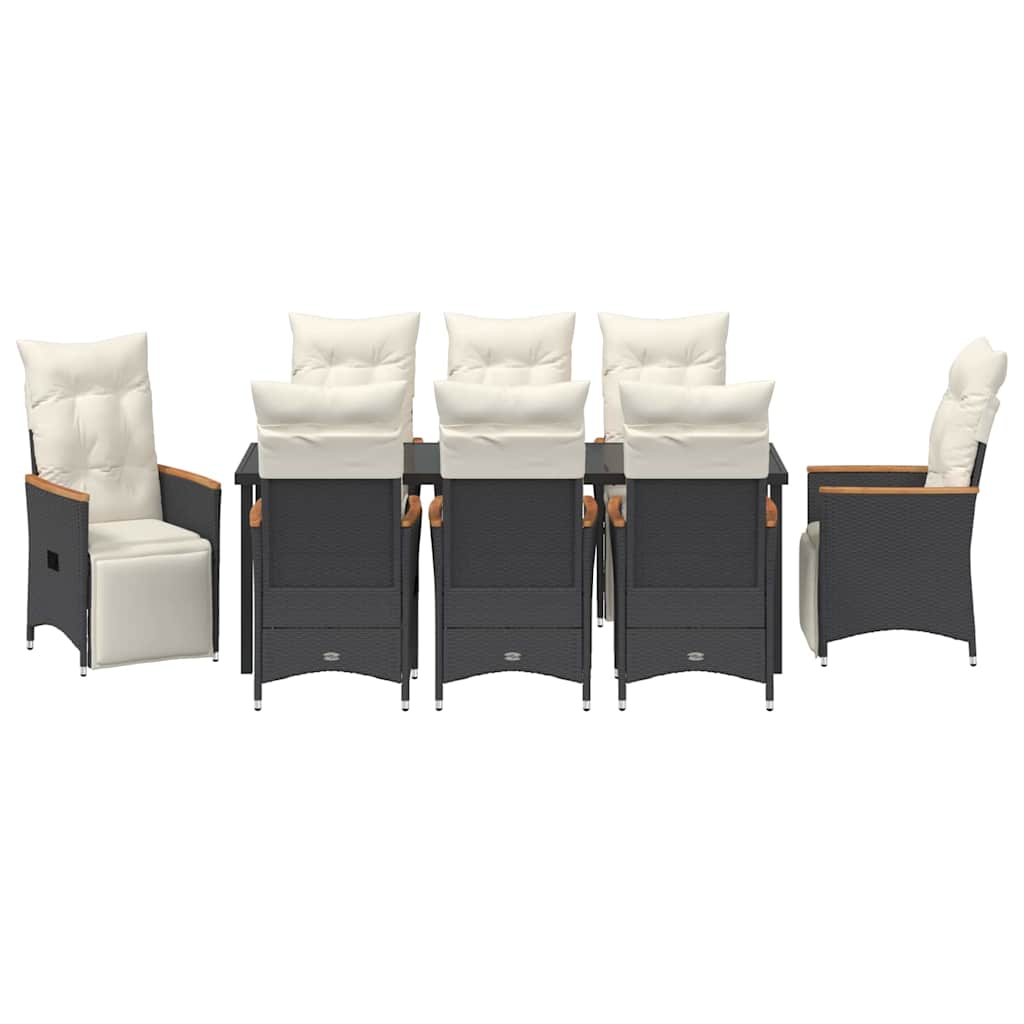 Dieses moderne Garten-Esszimmer-Set ist die perfekte Ergänzung für deinen Außenbereich und verbindet Stil mit Funktionalität. Das klare, schlichte Design passt zu vielen Gärten und Terrassen und lädt einfach zum Entspannen und Genießen im Freien ein. Egal, ob du mit der Familie isst oder eine Gartenparty feierst, dieses Set bietet viel Platz für alle. Die Mischung aus Materialien macht es zum Blickfang, und die Langlebigkeit sorgt dafür, dass es gut aussieht, egal, wie oft das Wetter wechselt. Langlebiges Poly-Rattan: Hergestellt aus UV-beständigem Poly-Rattan, das lange hält und wenig Pflege braucht. Es übersteht alle Wetterbedingungen und sieht dabei auch noch modern aus. Schlanker pulverbeschichteter Stahl: Der Rahmen und die Beine sind aus pulverbeschichtetem Stahl, was Stabilität und einen trendigen Look bedeutet. Das Finish hält Kratzer und Abplatzungen ab, damit das Set auch bei Wind und Wetter gut aussieht. Tempered Glass Surface: Die Glasplatte hat eine glatte und elegante Oberfläche, die nicht nur schick ist, sondern sich auch super leicht reinigen lässt. Ihre Robustheit macht sie perfekt für den Outdoor-Einsatz, da sie dem Wetter standhält. Komfortable Outdoor-Kissen: Wetterfeste Kissen sorgen für langanhaltenden Sitzkomfort. Die abnehmbaren und waschbaren Bezüge sind praktisch und sehen trotzdem toll aus. Die Schaumfüllung bietet genau den richtigen Halt. Rückenlehnen in mehreren Positionen: Mit verstellbaren Rückenlehnen kannst du die Position für ultimativen Komfort anpassen. So wird es allen Sitzvorlieben gerecht und macht es bei allen Veranstaltungen noch bequemer.