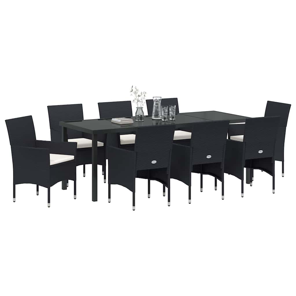 Dieses moderne Gartendining-Set strahlt Eleganz und Vielseitigkeit aus – ideal für alle, die gerne draußen feiern oder entspannen. Mit klaren Linien und minimalistischem Design passt es perfekt in jeden Garten oder auf jede Terrasse und schafft einen einladenden Ort, um die Natur zu genießen. Pulverbeschichteter Stahlrahmen: Ein robuster Rahmen sorgt dafür, dass dieses Set allen Wetterlagen standhält und sorgt für stabilen Gebrauch. Die pulverbeschichtete Oberfläche sieht klasse aus und macht das Set zum perfekten Begleiter im Freien, das ganzjährig genutzt werden kann. Poly-Rattan Rücken und Armlehnen: Die Kombination aus Poly-Rattan für die Rückenlehne und Armlehnen bringt Stil und Komfort mit ergonomischer Unterstützung. Dieses Material ist UV-beständig und bleibt somit auch bei direkter Sonneneinstrahlung, immer ansprechend. Gehärtete Glas Tischoberfläche: Eine schicke gehärtete Glasplatte sorgt für eine einfache Pflege und hält auch intensiven Anwendungsbedingungen stand. Das Glasdesign passt super in ein modernes Außenambiente und bleibt funktional und stilvoll. Wetterfeste Kissen: Die Kissen sind unter verschiedenen Wetterbedingungen ein komfortabler Hit. Hochwertiger Stoff sorgt dafür, dass sie lange halten. Die Schaumfüllung macht das Sitzen auch nach längerem Gebrauch angenehm und ist perfekt für entspannte Sommerabende. Sommerbereit: Dieses Set ist so konzipiert, dass es jede Terrasse oder jeden Garten aufwertet. Es lässt sich leicht montieren und benötigt nur zwei Personen und einen Schraubendreher – perfekt, um deinen Außenbereich mühelos zu optimieren.