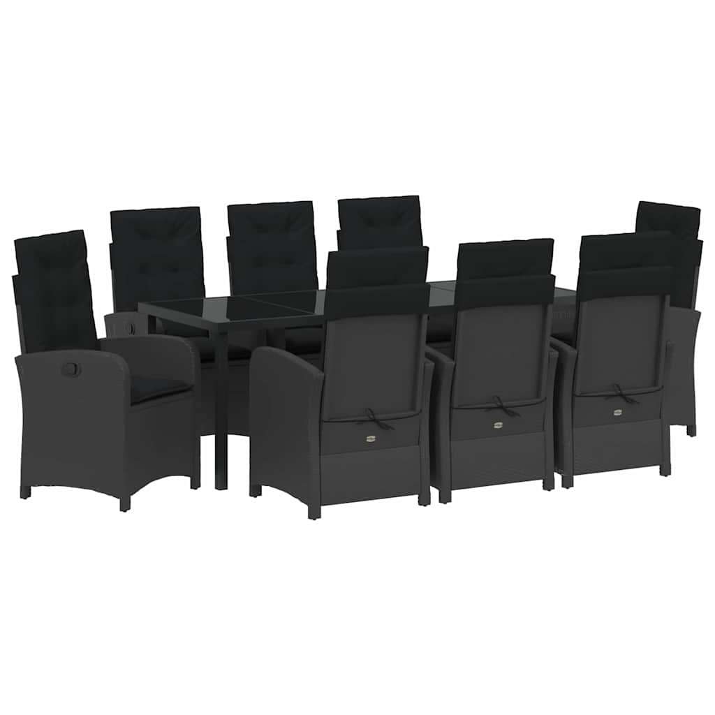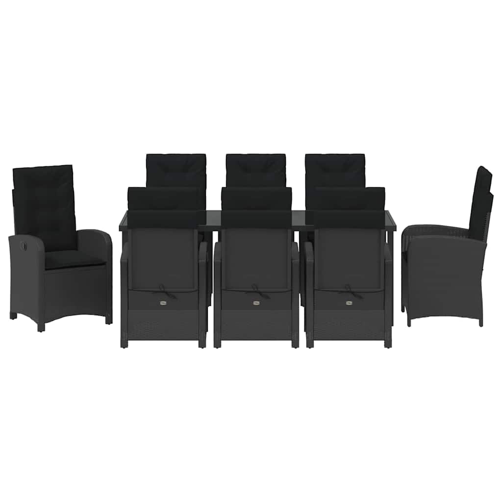 Garten Essgruppe mit Kissen 9 pcs Schwarz Poly-Rattan