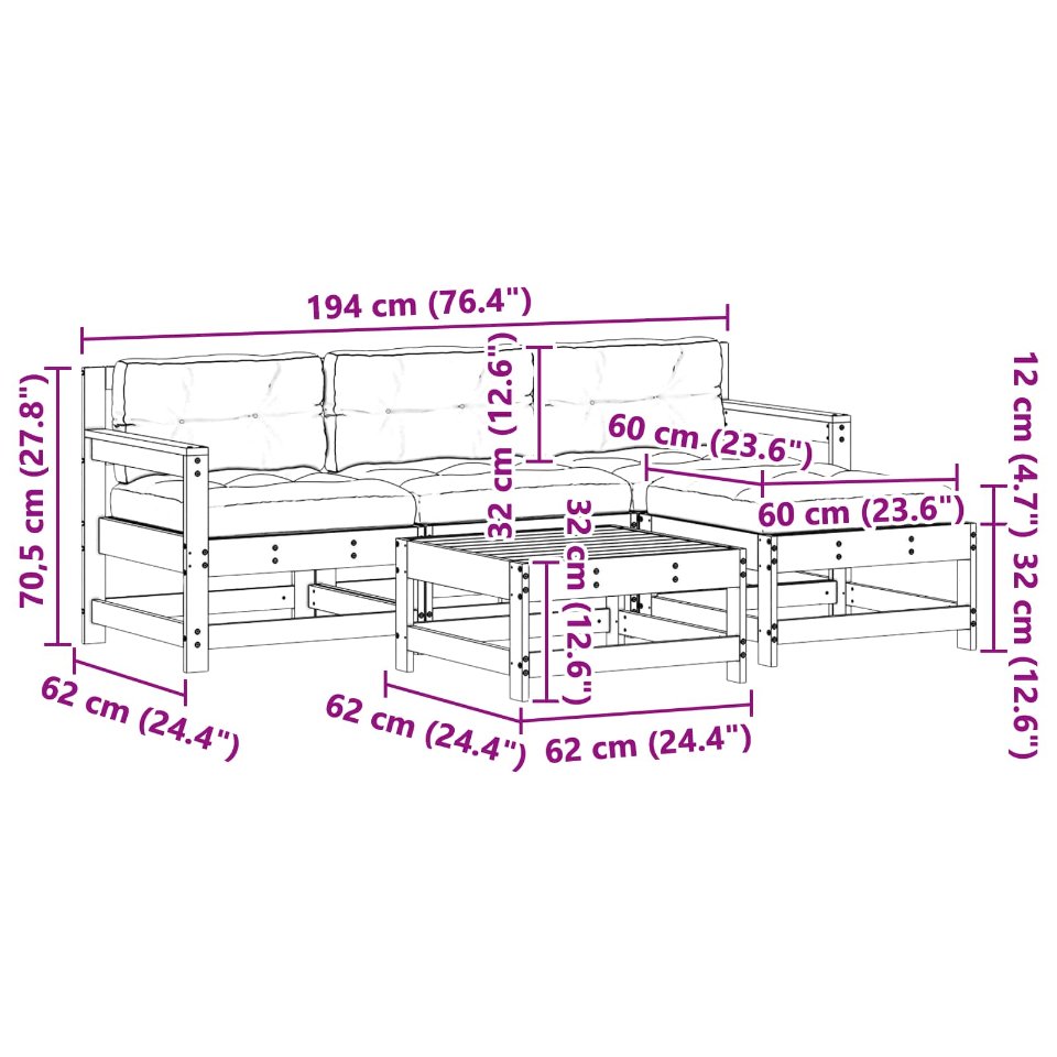 Das modulare Gartenlounge-Set ist genau das Richtige für alle, die sowohl Stil als auch Praktikabilität an ihren Außenplätzen lieben. Dieses vielseitige Möbelset passt sich deinem Bedarf an und lässt sich super einfach umfunktionieren, egal wie viele Leute da sind. Die neutralen Farben und das moderne Design machen es zur perfekten Wahl für Gärten und Terrassen und passen zu jeder Deko. Die glatte Oberfläche sieht nicht nur schick aus, sondern sorgt auch für eine angenehme Atmosphäre, egal ob für entspannte Nachmittage oder lebhafte Treffen. Massive Kiefernholzrahmen: Das Lounge-Set hat einen stabilen Rahmen aus massivem Kiefernholz, der viel Haltbarkeit und Stabilität bietet. Die natürliche Oberfläche bringt die Schönheit des Holzes gut zur Geltung und ist zudem wetterfest. So kannst du die Möbel das ganze Jahr über nutzen, ohne dass sie an Qualität verlieren. Kuschelige Polyesterkissen: Die taupefarbenen Kissen sorgen für extra Komfort, ideal zum Entspannen. Sie sind leicht zu reinigen und passen perfekt zu vielen verschiedenen Farben und Stilen im Garten. Vernickelte Oberfläche: Jedes Teil des Sets hat eine schützende Lackierung, die das Aussehen aufwertet und für zusätzlichen Schutz sorgt. Diese Beschichtung verleiht dem Holz eine elegante und schicke Note, die hält. Praktische Komponenten: Das Set hat quadratische Armlehnen und Beine, die für Komfort und Stabilität sorgen. Diese Details bleiben nicht unbemerkt und passen gut zum coolen Design. Pflegeleicht: Um das Set in Topform zu halten, nutze eine Schutzhülle und bring die Kissen bei schlechtem Wetter nach drinnen. Wenn du das machst, bleibt das Set viele Jahre ein toller Teil deines Außenbereichs.