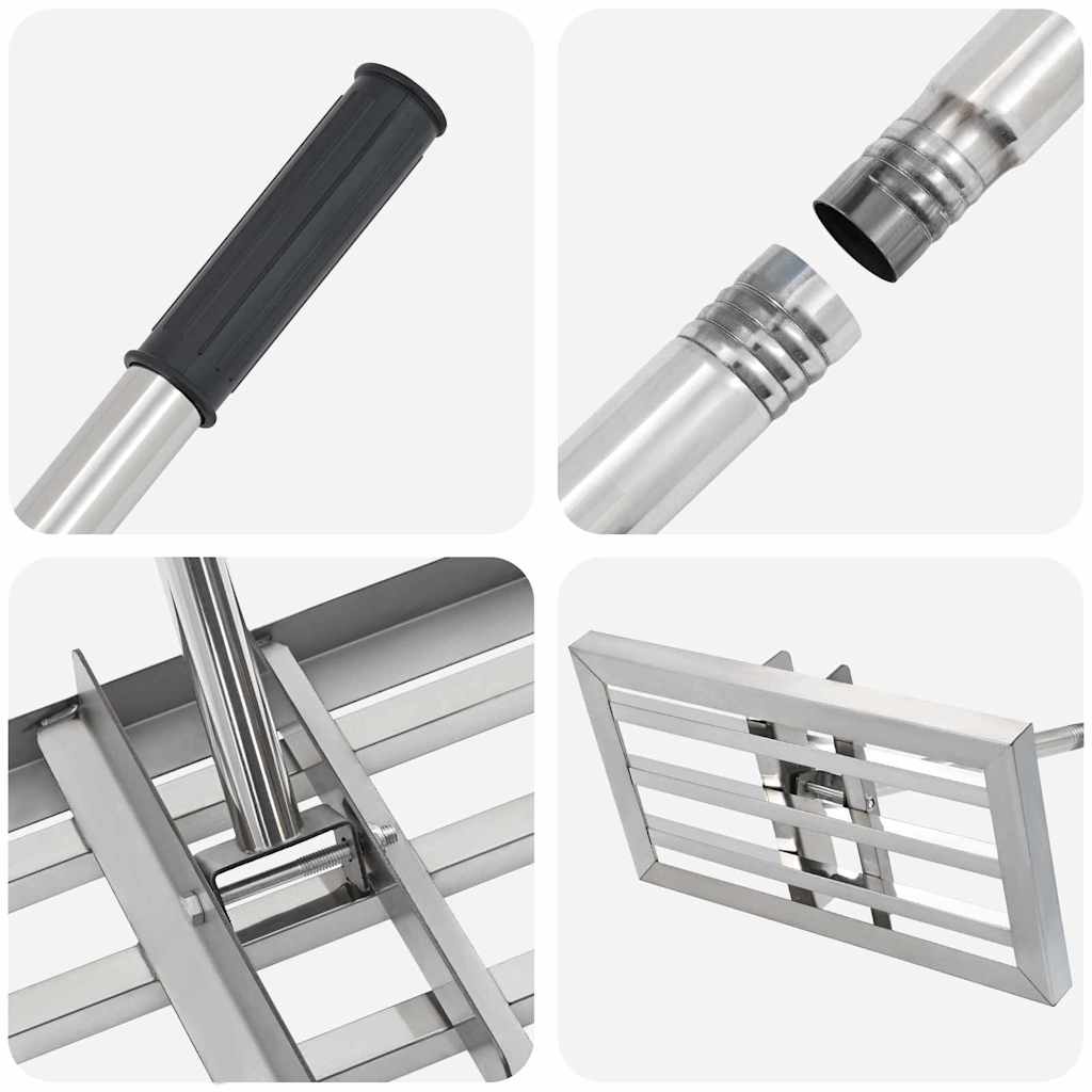 Dieser Multifunktionsgartenrechen ist ein geniales Werkzeug für Gärtner, die Wert auf Stil und Vielseitigkeit legen. Mit seinem modernen Look und dem praktischen Design passt er perfekt, egal ob du im Garten oder auf der Terrasse bist. Die edle gebürstete Oberfläche gibt ihm ein schickes Aussehen, das gut zu seinem leichten, aber stabilen Aufbau passt. Egal, wie viel Erfahrung du hast, dieses Werkzeug ist ein absolutes Must-Have für die Gartenpflege, und du wirst lieben, wie einfach es sich dank der manuellen Anpassungsoption verwenden lässt. Wasserabweisend: Mach dir keine Sorgen um das Wetter! Der Gartenrechen hält Regen und Sonne stand. Dank langlebiger Materialien musst du ihn nicht oft ersetzen. Vielseitig: Er kann fast alles! Vom Laubrechen bis hin zum Glätten von Erde, er ist für eine Menge Aufgaben nützlich. Ein Must-Have für jeden Gärtner. Einfache Handhabung: Super leicht, damit du ihn problemlos im Garten bewegen kannst. Sein Design ist benutzerfreundlich und macht lange Gartenstunden zum Kinderspiel. Plus, die glatte Oberfläche sorgt dafür, dass du ihn ohne Mühe bedienen kannst. Verstellbar: Die drehbare Funktion erlaubt dir, ihn in jede Richtung zu drehen. Ideal für enge Stellen oder bei der Arbeit um Pflanzen, gibt dir die Präzision, die du brauchst. Mit den manuellen Anpassungen hast du die volle Kontrolle. Robuste Materialien: Stabil gebaut, kann dieser Rechen die schweren Sachen bewältigen und lässt sich dennoch leicht bewegen. Sein solides Design sorgt dafür, dass er lange hält und klasse funktioniert, was ihn zu einer klugen Investition für jeden Gärtner macht.