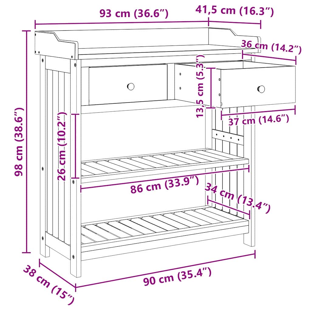 - Gesamtabmessungen: 93 x 41,5 x 98 cm (L x B x H)