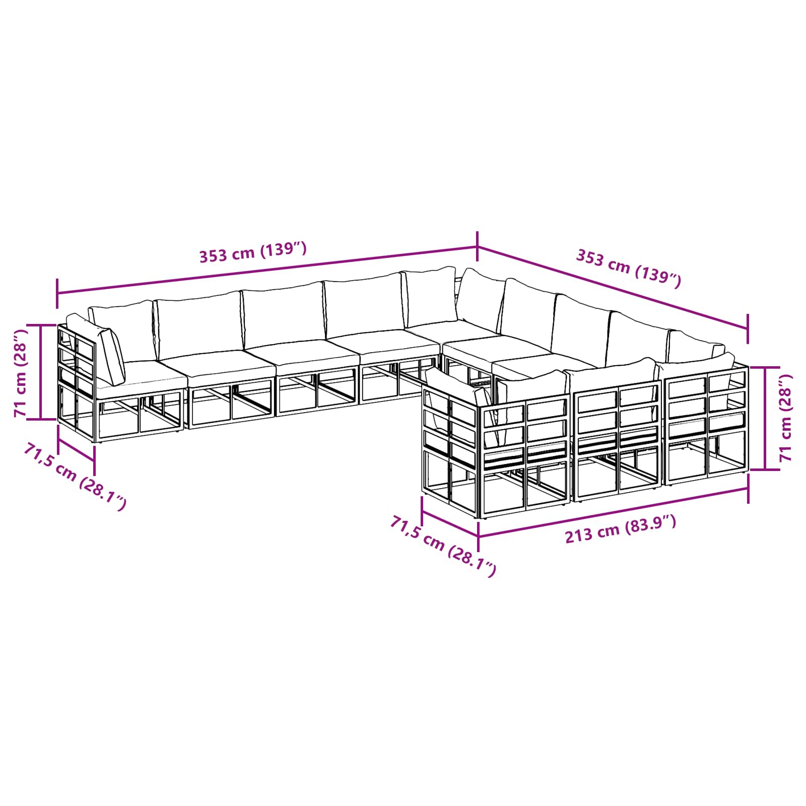 Garten-Sofa-Set 11 pcs Schwarz 70 x 70 x 32 cm Aluminium