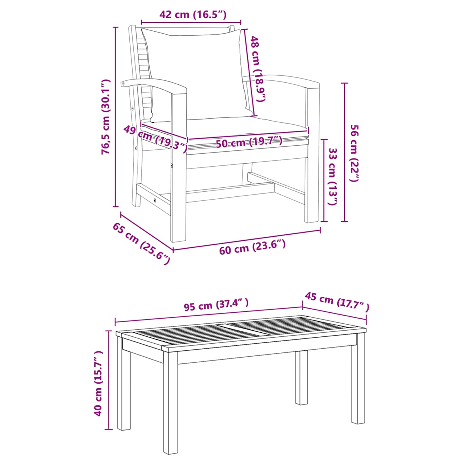 - Gesamtabmessungen: 95 x 45 x 40 cm (B x L x H)