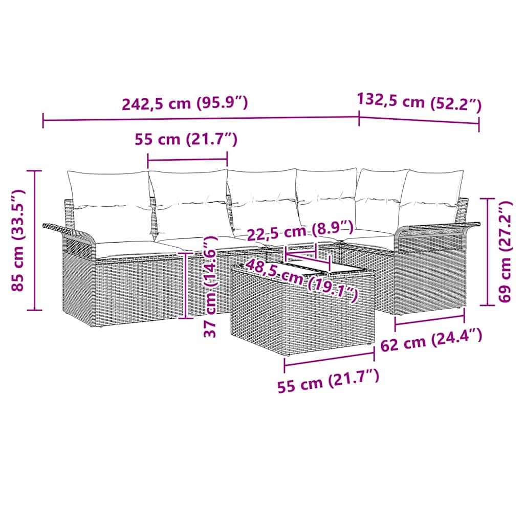 - Lieferumfang: 1 x Ecksofa, 2 x Mittelsofa, 2 x Armlehnen-Sofa, 1 x Tisch