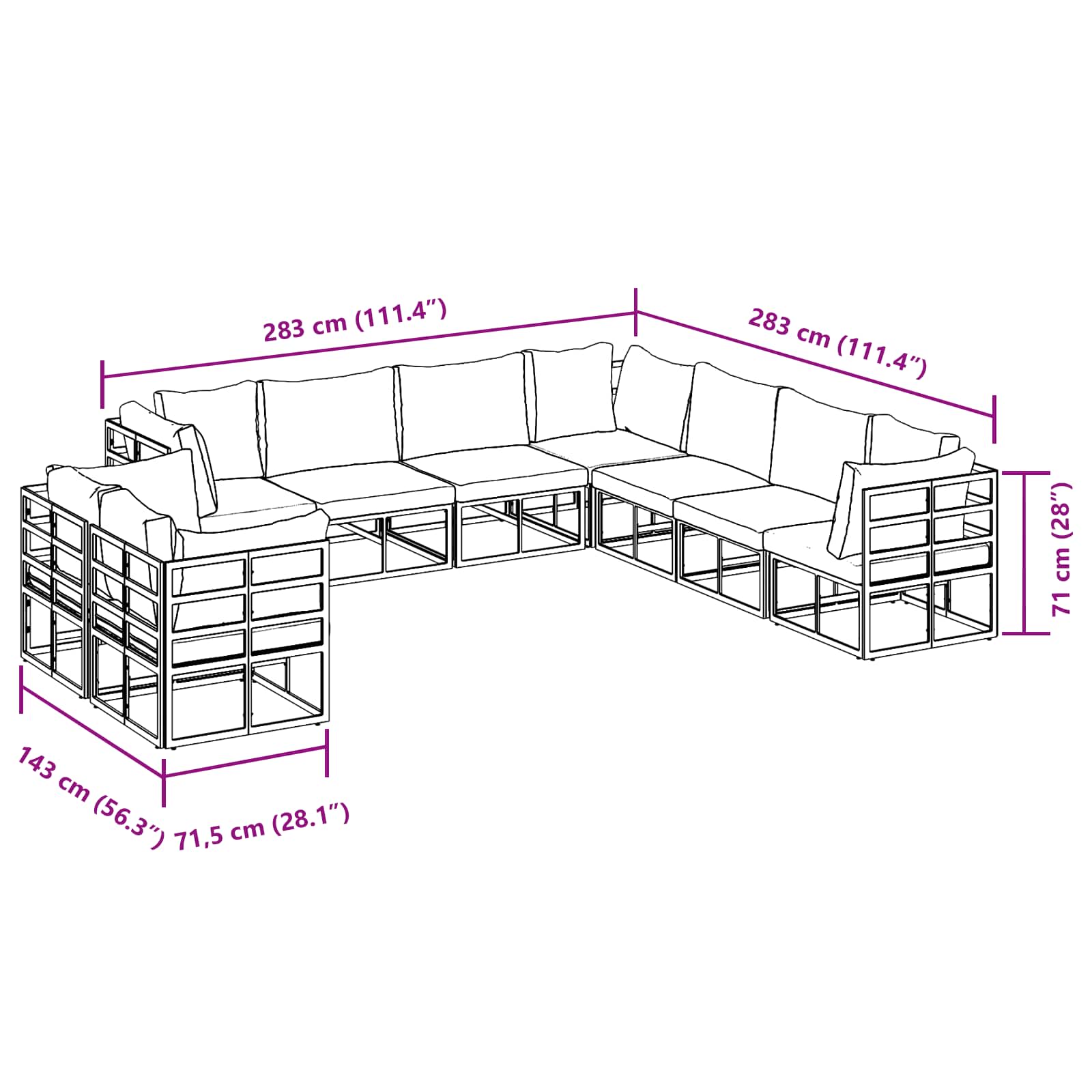 - Größe: 283 x 283 x 71 cm