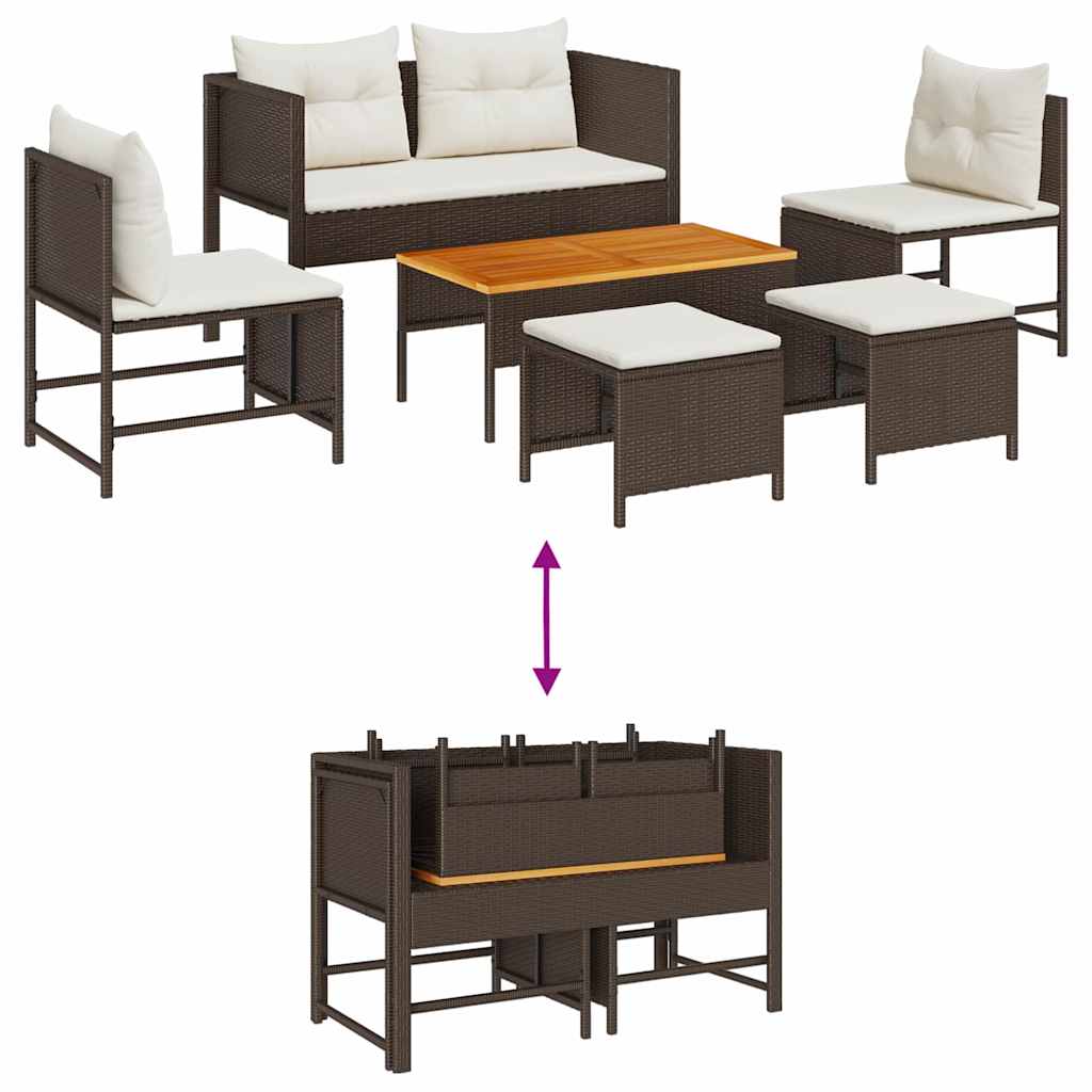 Dieses moderne Garten-Sofa Set bringt eine entspannte Atmosphäre in deinen Außenbereich, ideal zum Relaxen oder für Besuch. Das stylische Design und die bequemen Kissen machen es zum Highlight auf deinem Balkon oder im Garten und laden dazu ein, das schöne Wetter zu genießen. Stylisches Design: Die klaren Linien und der angesagte Look machen jeden Außenbereich besonders und perfekt für gesellige Anlässe und Entspannung. Die Kombination aus Braun und Creme bietet einen tollen Kontrast und harmoniert klasse mit moderner Dekoration. Bequeme Sitzgelegenheiten: Die gemütlichen Kissen bedecken die Sitzflächen und bieten allen Gästen einen bequemen Platz. Sie sind perfekt gefüllt, bieten Weichheit und gleichzeitig Halt – ideal für lange Gespräche. Robuste Konstruktion: Aus hochwertigem Rattan und Holz gefertigt, ist dieses Set so gebaut, dass es anderen Wetterlagen trotzt und dabei charmant bleibt. Die matte Oberfläche bringt einen Hauch von Eleganz und sorgt dafür, dass die Möbel länger frisch aussehen. Einfache Pflege: Mit abnehmbaren Kissenbezügen, die mit einem Reißverschluss verschlossen werden, ist die Reinigung einfach. Wisch die natürlichen Materialien ab, um das Set das ganze Jahr über frisch zu halten. Vielseitige Funktionalität: Perfekt für jede Art von Außenbereich, sei es auf Patios oder Balkonen, lässt sich dieses Sofa Set bei Versammlungen von bis zu vier Personen nutzen – ideal für Essen, Entspannung oder einfach nur zum Chillen im Freien.